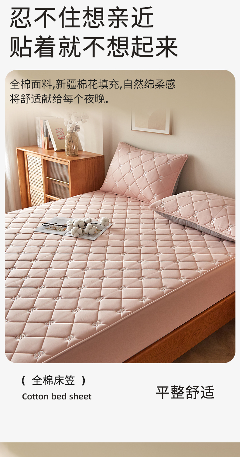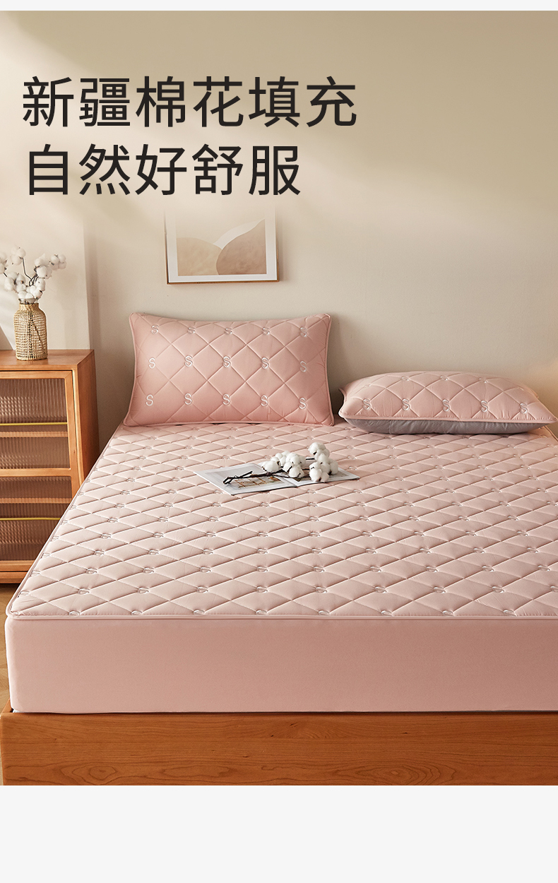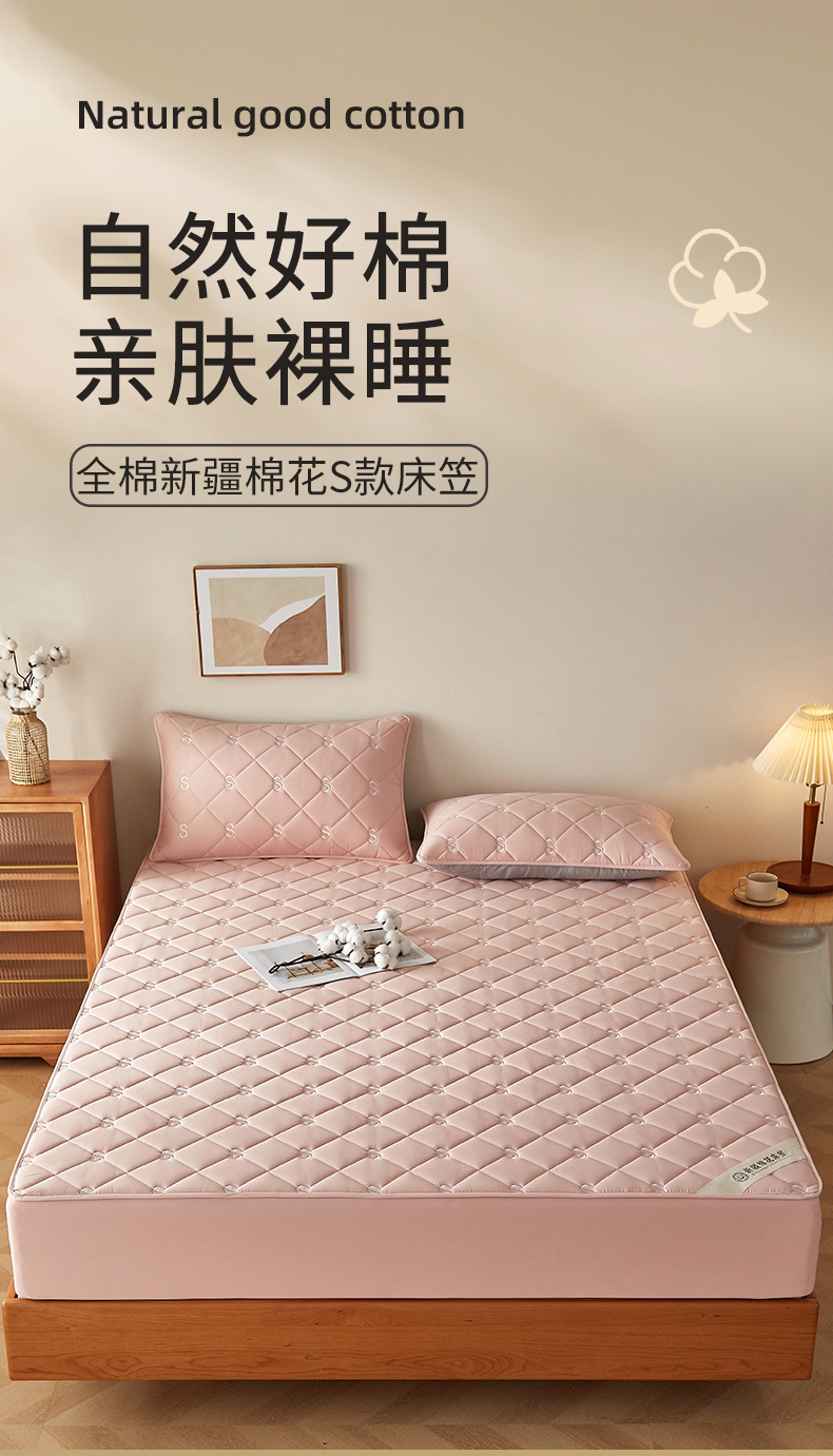 红淳家纺 2025新款全棉纯棉新疆棉花S款床笠单品床笠床笠单件 棉花S款-嫩粉