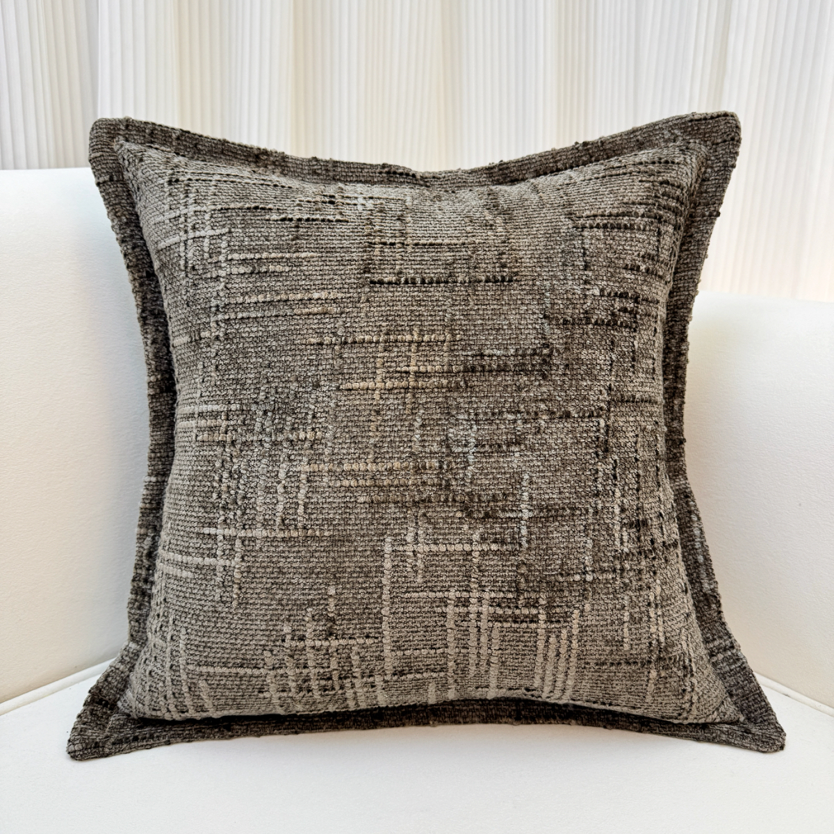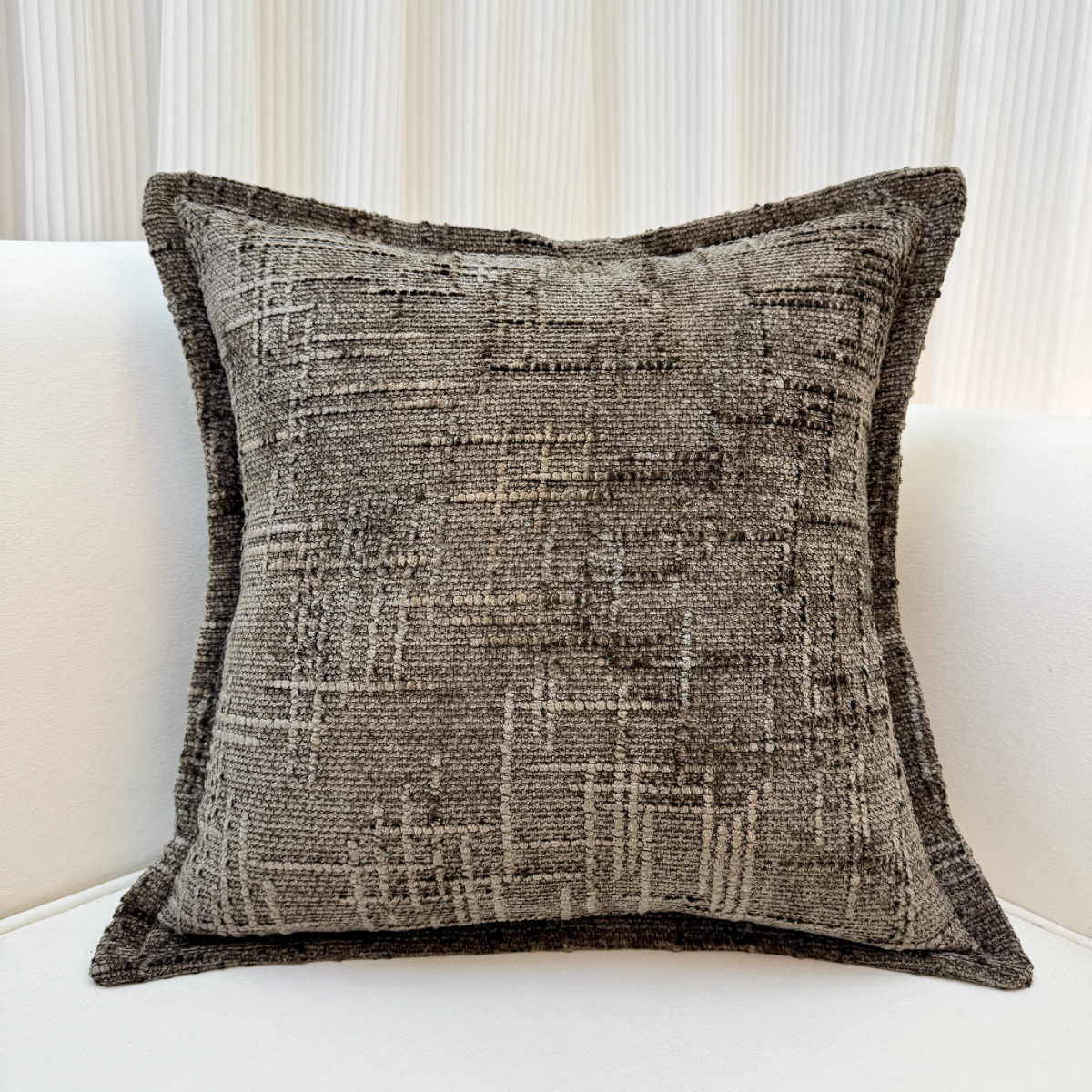 爱家居 2025新款跨境亚马逊加厚双面雪尼尔宽边枕套美式压边抱枕客厅纯色靠垫 宽边雪尼尔—咖色