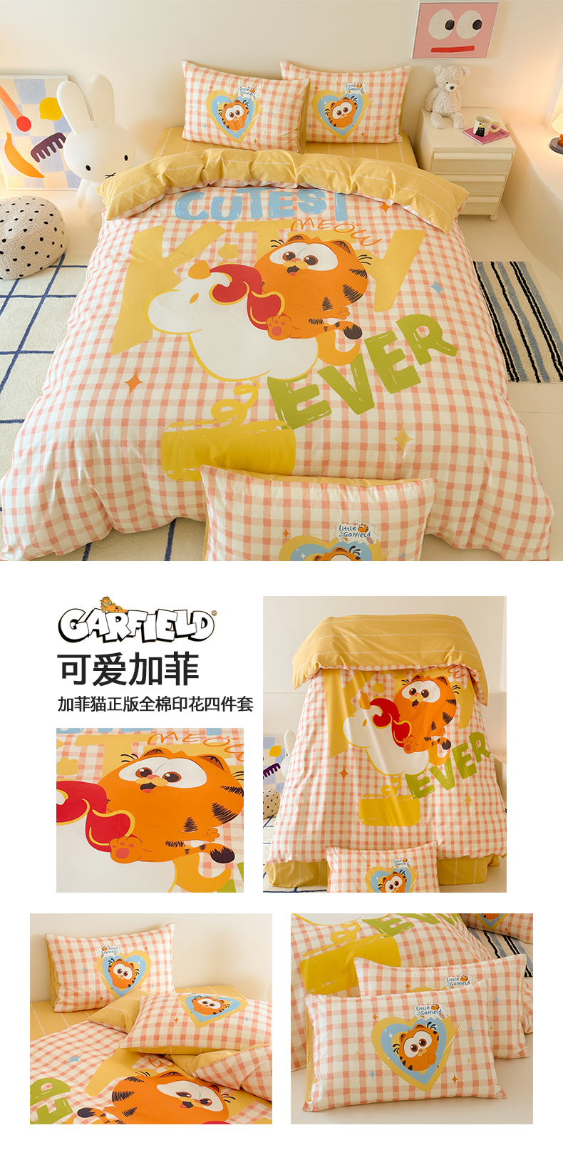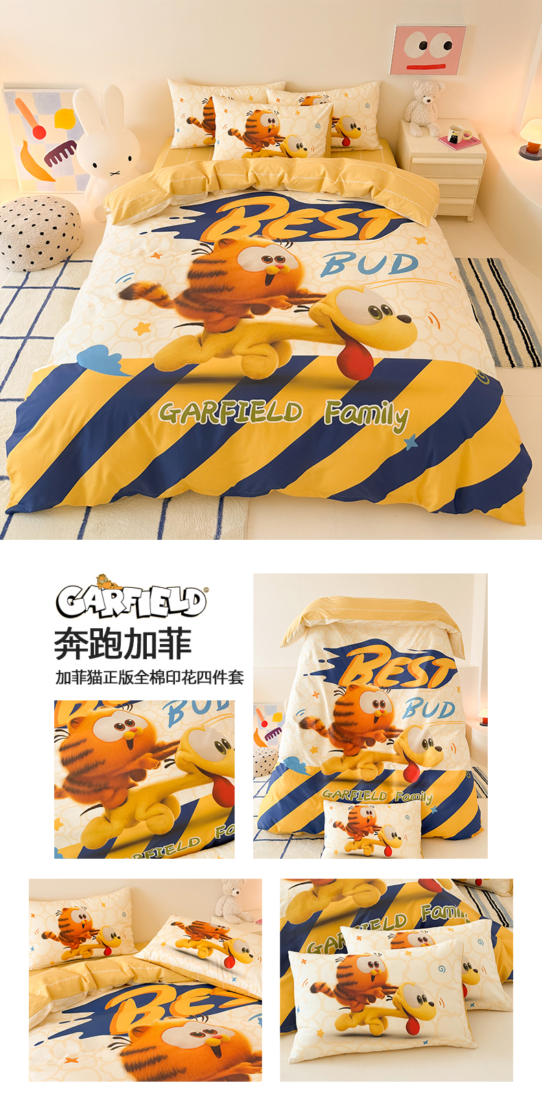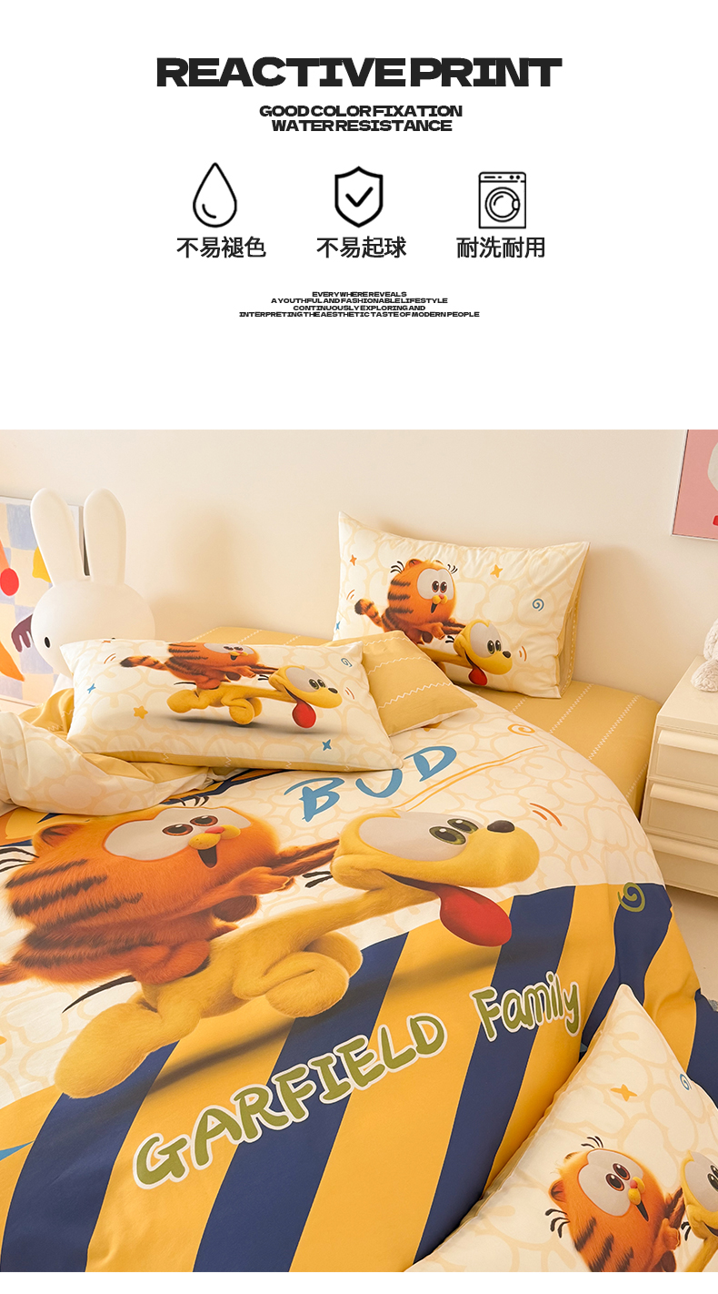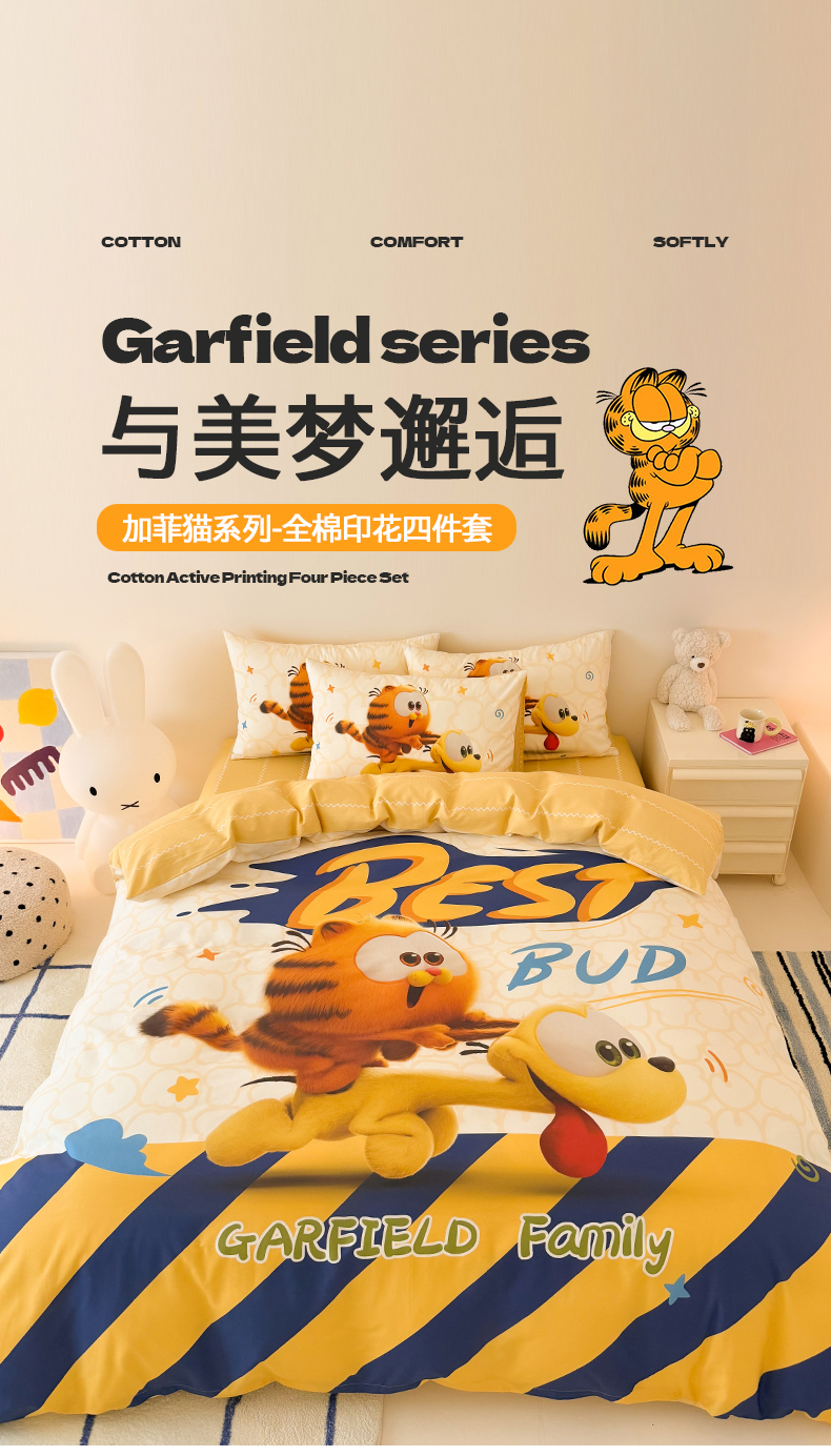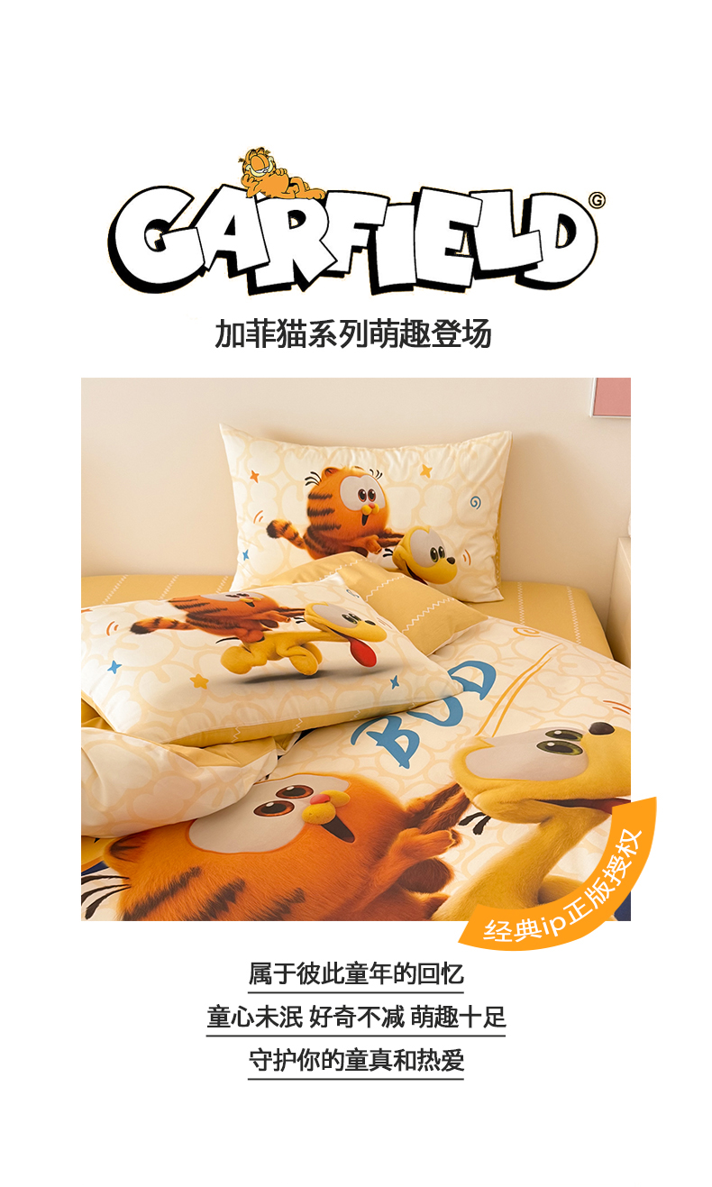 当前位置: 91家纺网 > 商品网购 > 床品套件 > 四件套 > 全棉普通四件套 > 锦彩家居 2025新款全棉数码印花卡通四件套-加菲猫系列 奔跑加菲