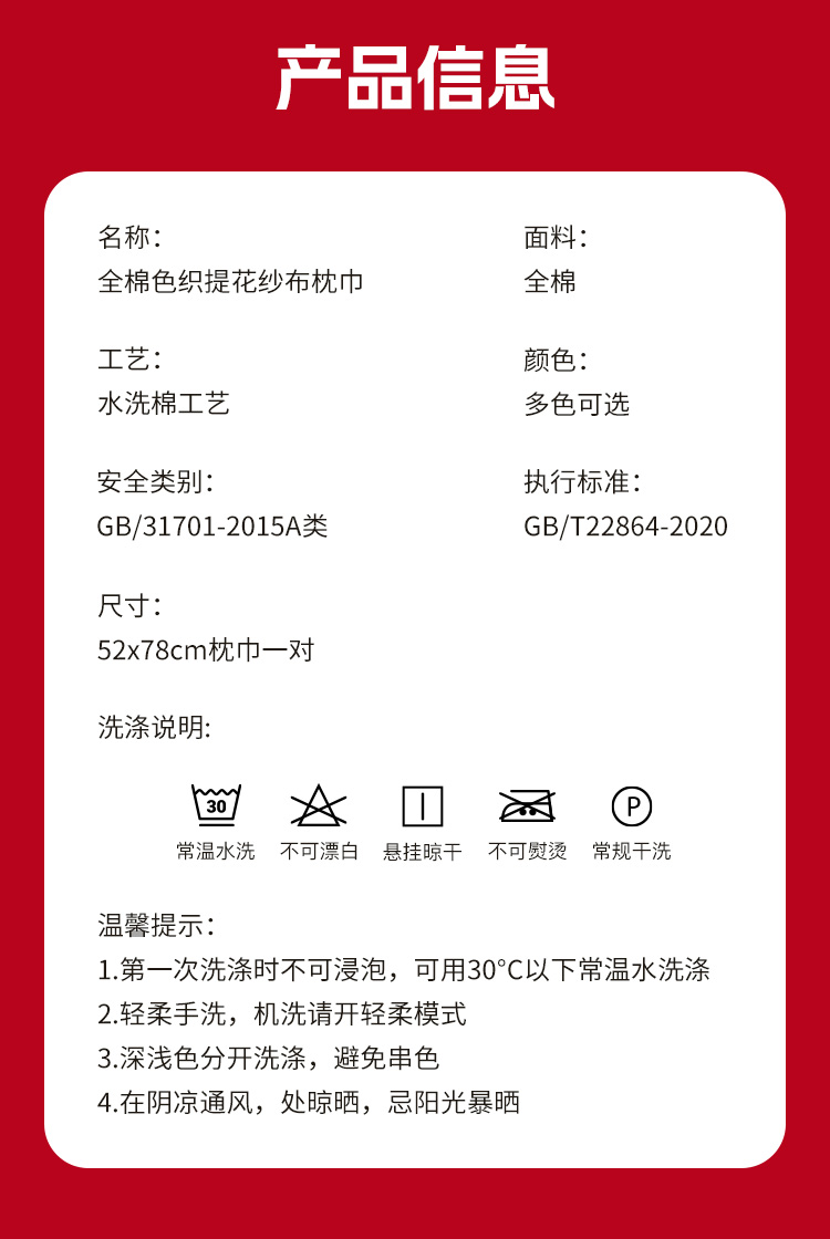 (总)沐瑟家纺 2026新款A类全棉三层色织提花纱布日系纱布枕巾-彩条,彩条 -红蓝,彩条-红绿