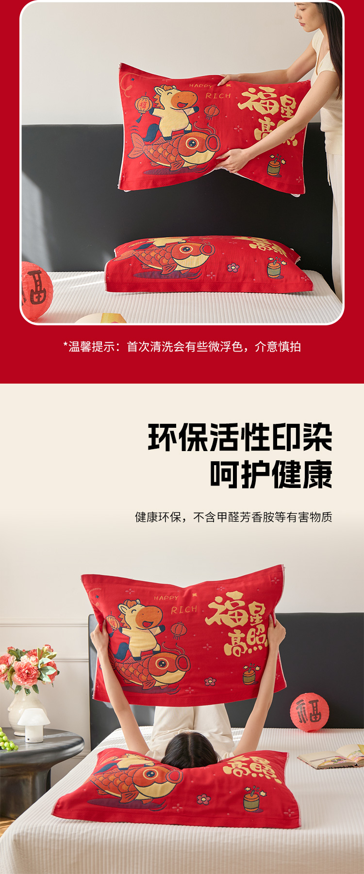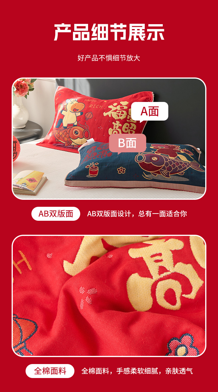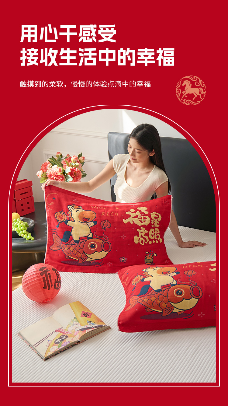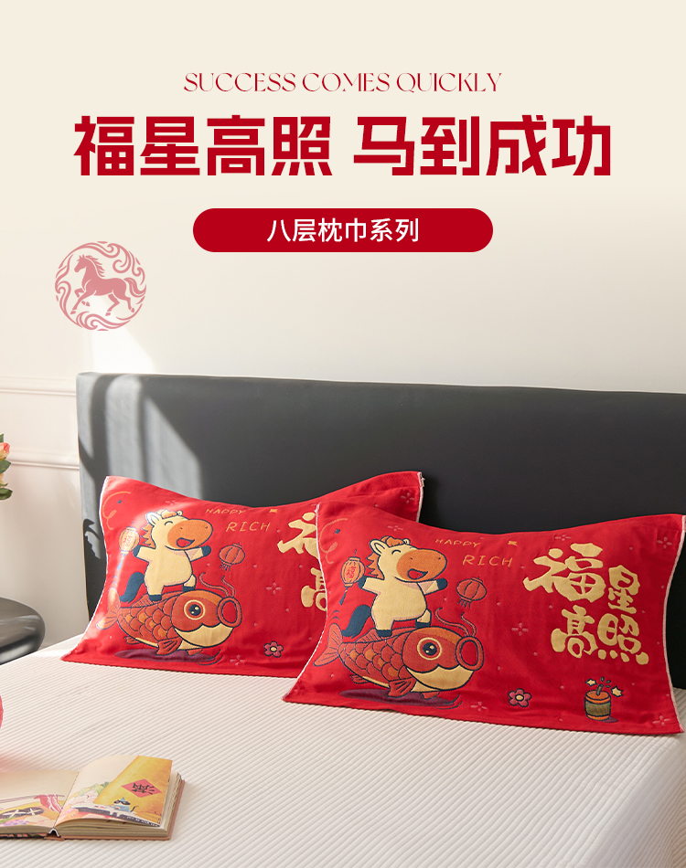 商品名称:沐瑟家纺 2026新款纯棉八层枕巾-马 福星高照马