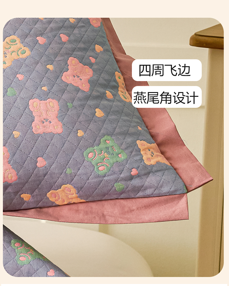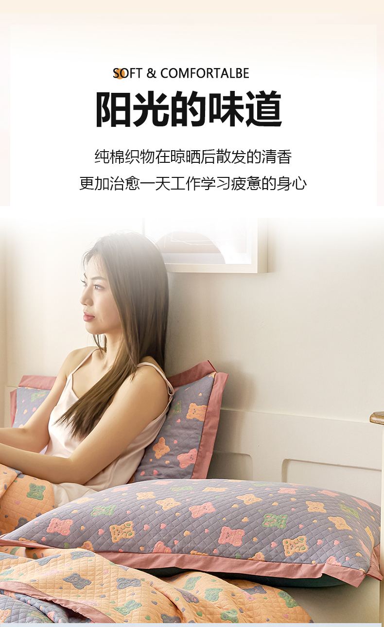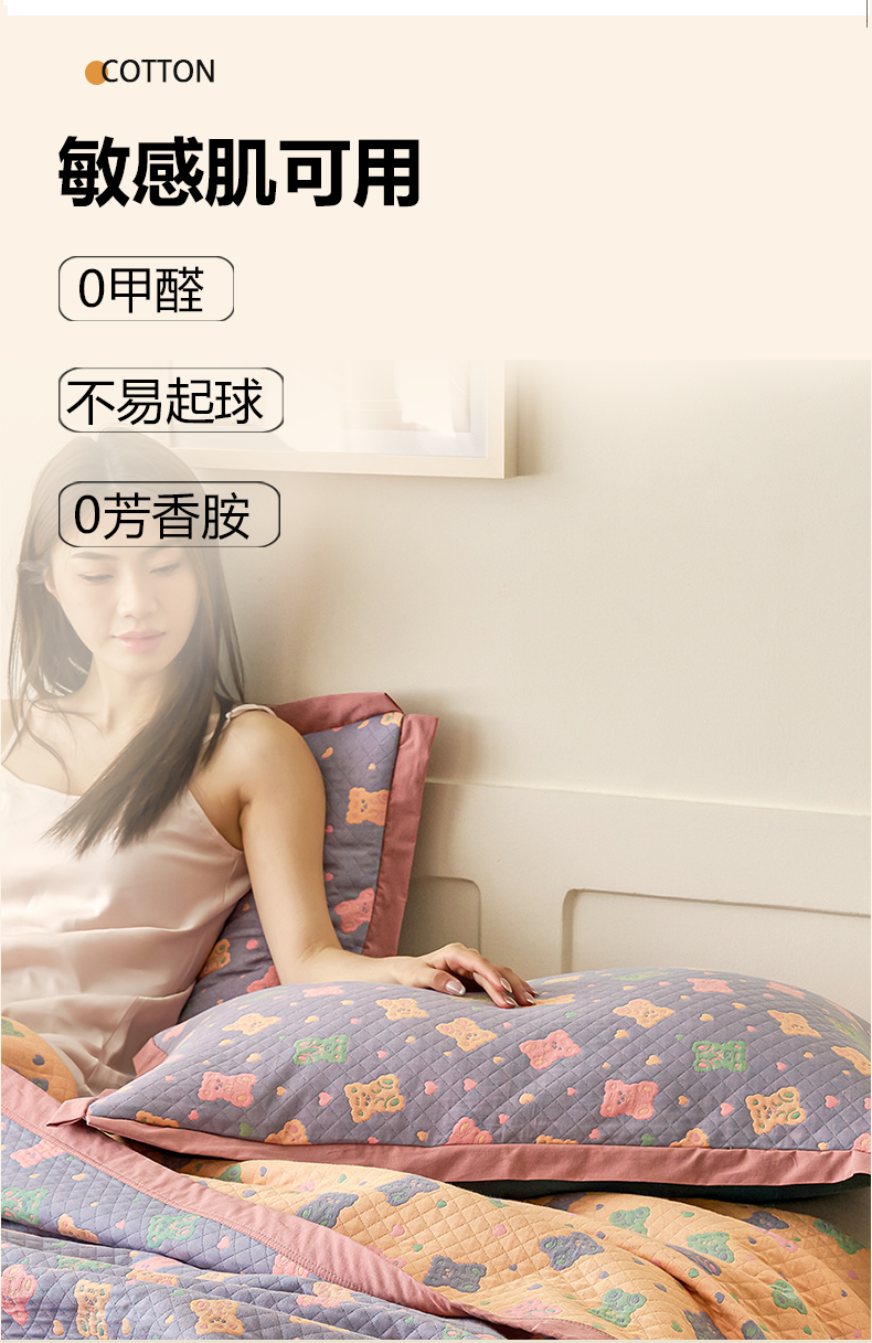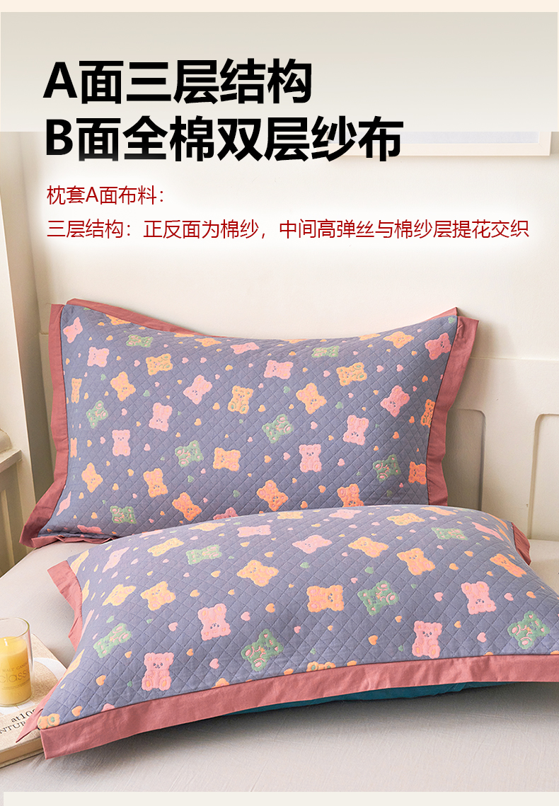 商品名称:棠薇家纺 2025新款全棉彩纱枕套燕尾角枕套夹棉双层纱48*74cm枕头套单只装一对装 糖豆熊