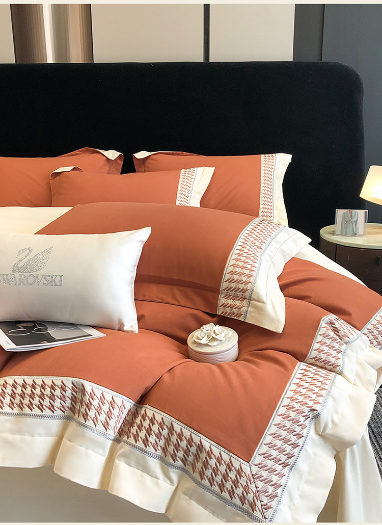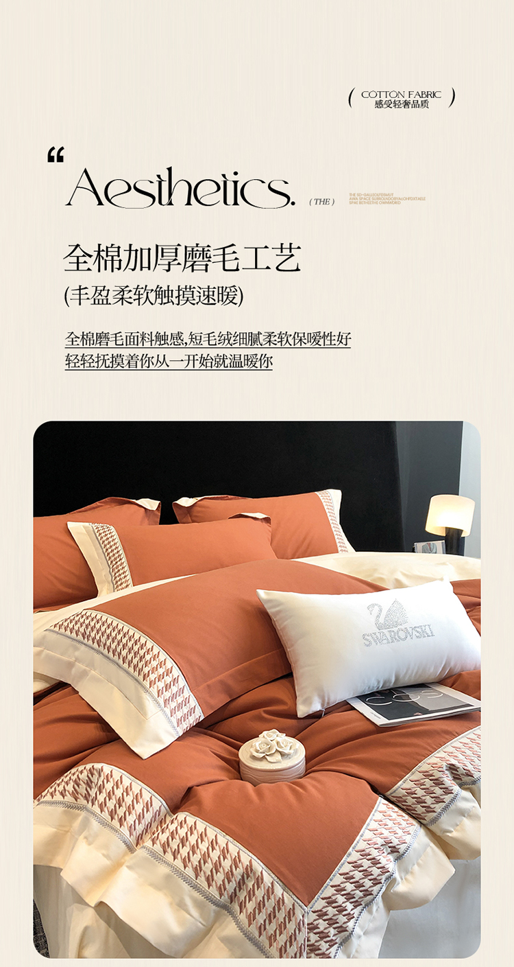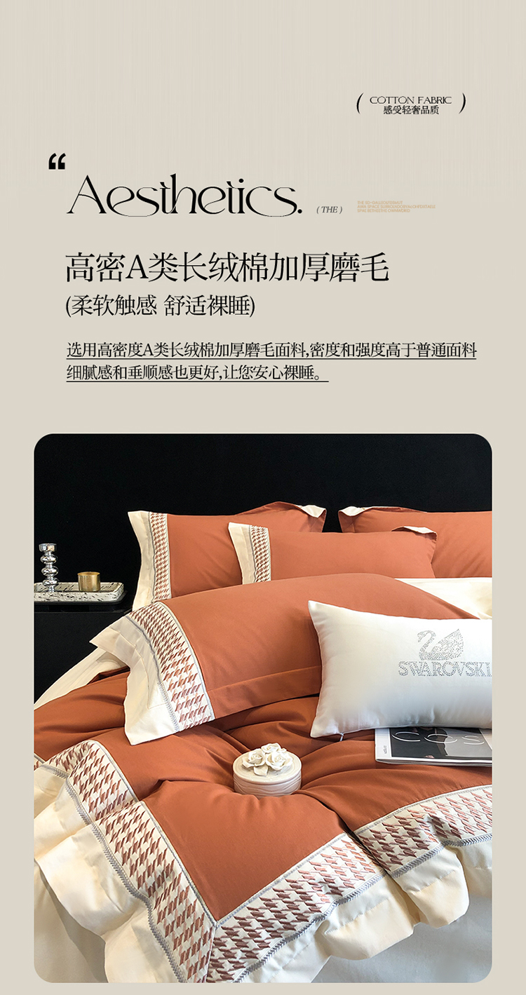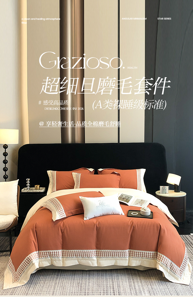 当前位置: 91家纺网 > 商品网购 > 床品套件 > 四件套 > 贡缎全棉四件套 > (可开发票)高档礼盒装超柔超细旦50S长绒棉磨毛刺绣四件套全棉100%纯棉秋冬加厚床品 焦糖咖-千鸟格-A类超细旦超柔长绒棉