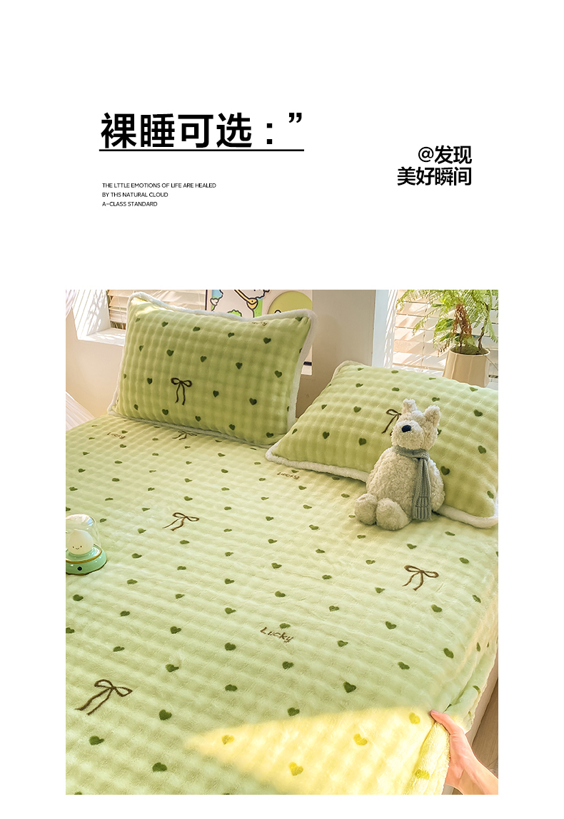 眠势力 2025新款暖绒泡泡床笠单件冬季保暖床罩牛奶绒床垫保护套 爱心绿【暖绒泡泡床笠】