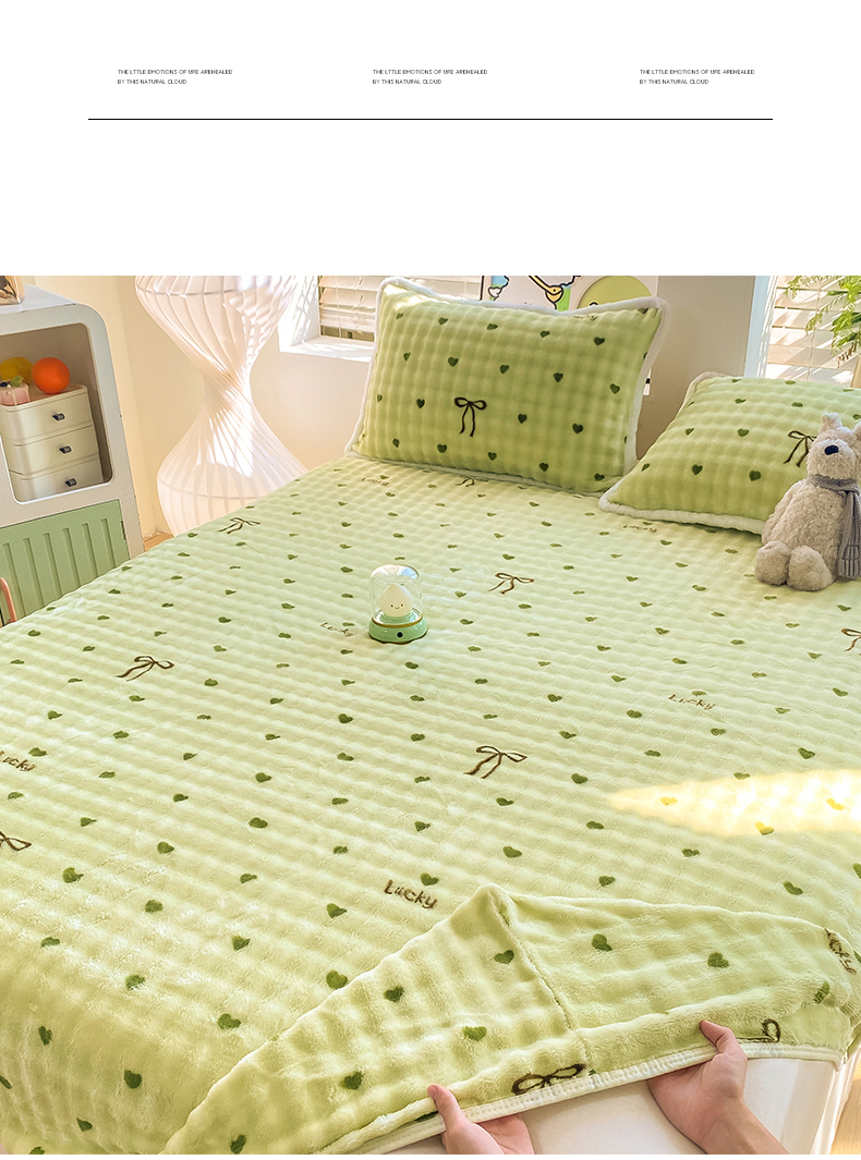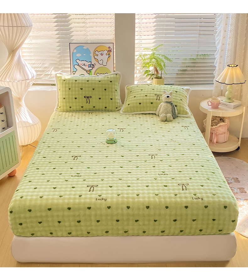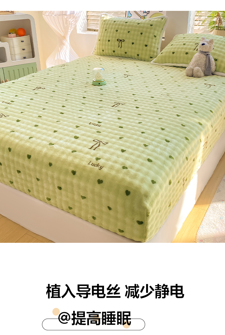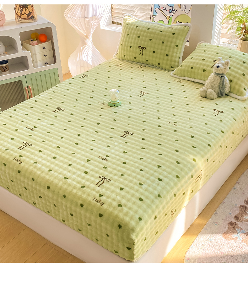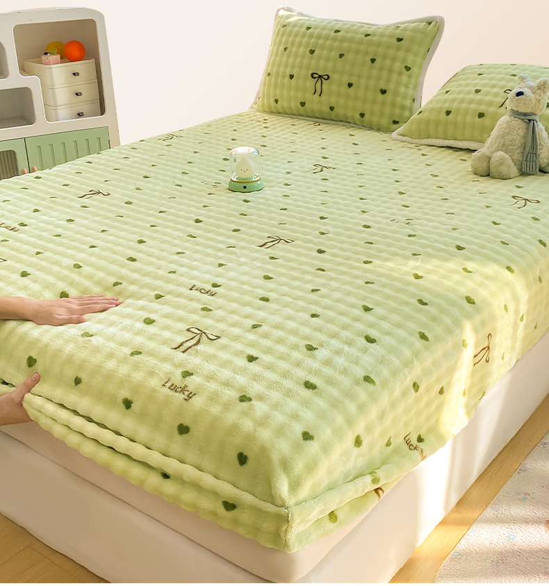 • 91家纺网 家纺一手货源 找家纺 眠势力 2025新款暖绒泡泡床笠单件冬季保暖床罩牛奶绒床垫保护套 爱心绿【暖绒泡泡床笠】