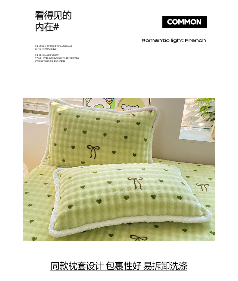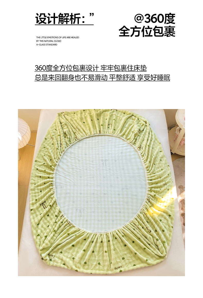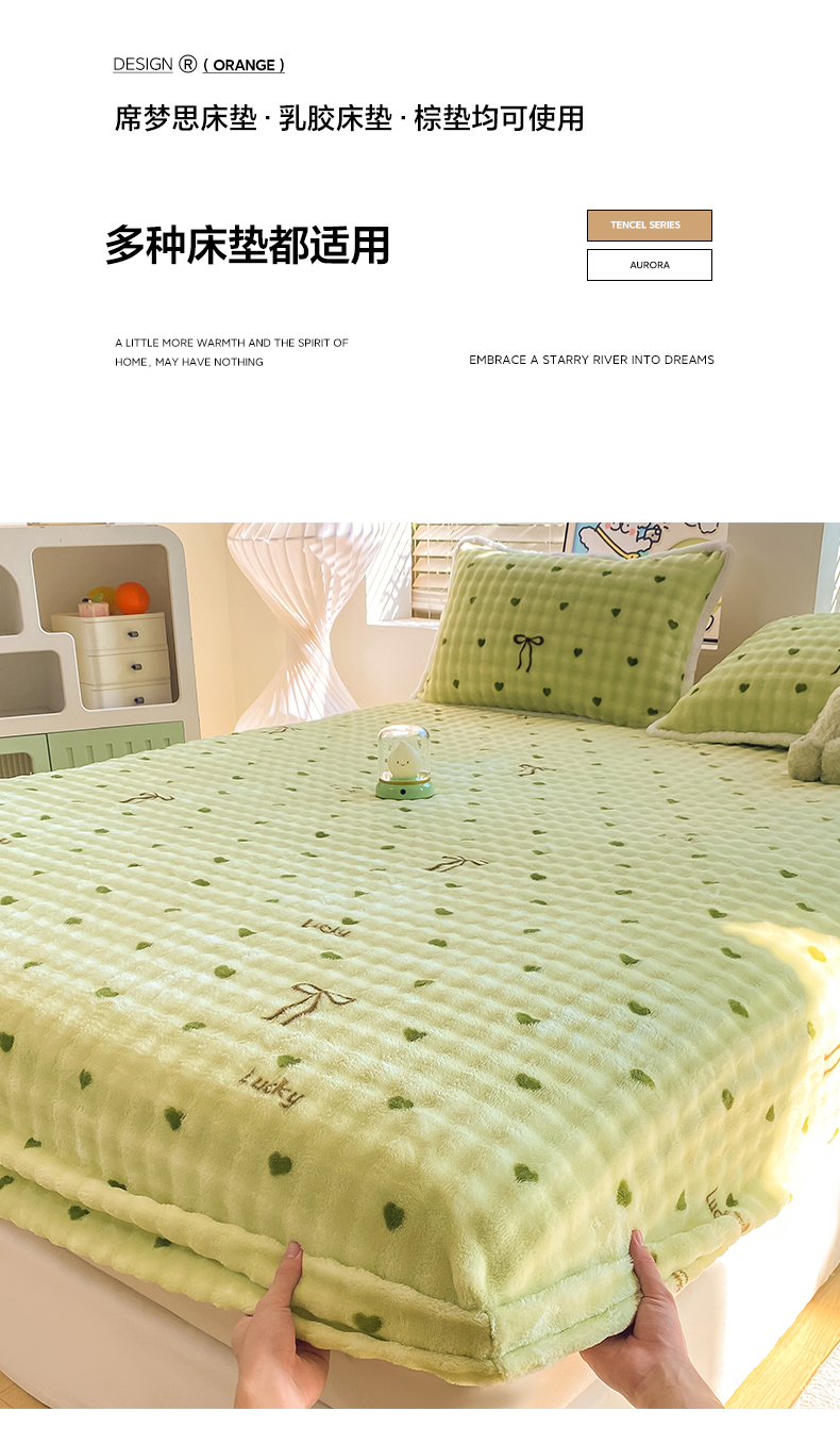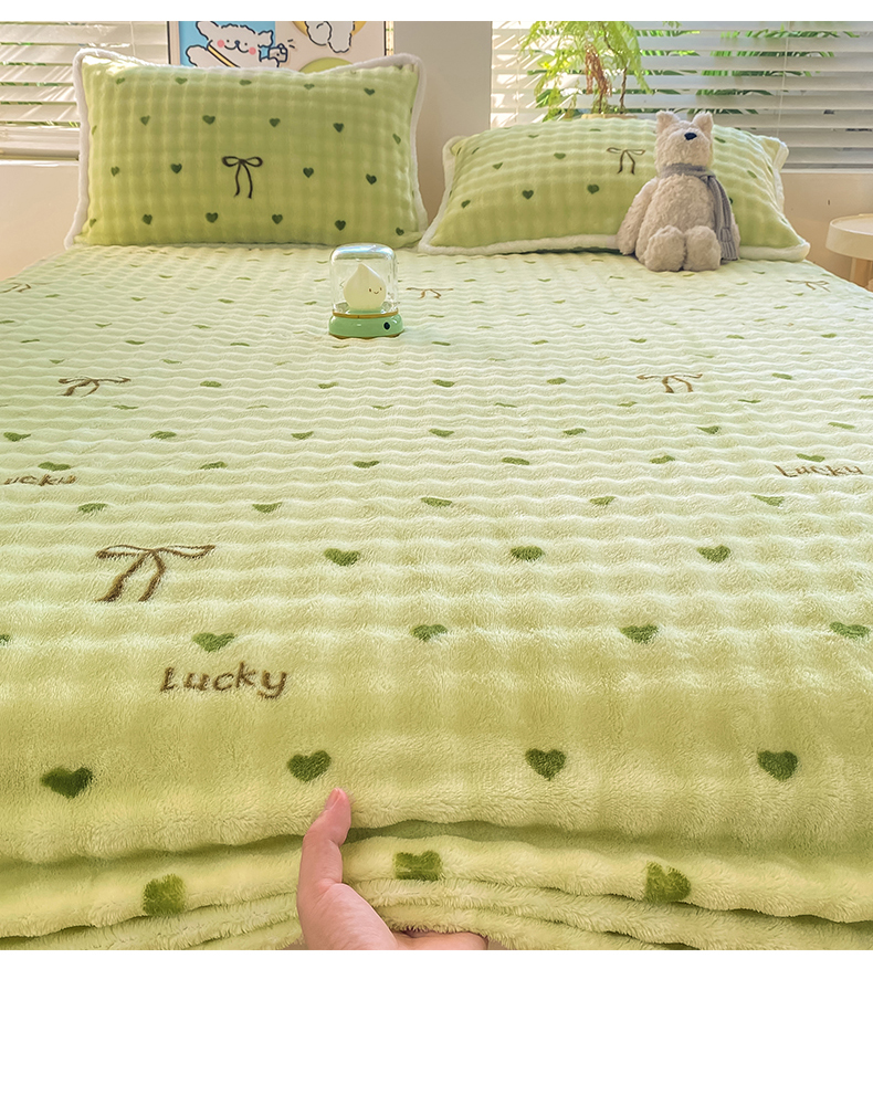 • 91家纺网 家纺一手货源 找家纺 眠势力 2025新款暖绒泡泡床笠单件冬季保暖床罩牛奶绒床垫保护套 爱心绿【暖绒泡泡床笠】