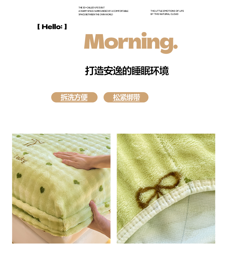 当前位置: 91家纺网 > 商品网购 > 床上用品 > 床笠 > 眠势力 2025新款暖绒泡泡床笠单件冬季保暖床罩牛奶绒床垫保护套 爱心绿【暖绒泡泡床笠】