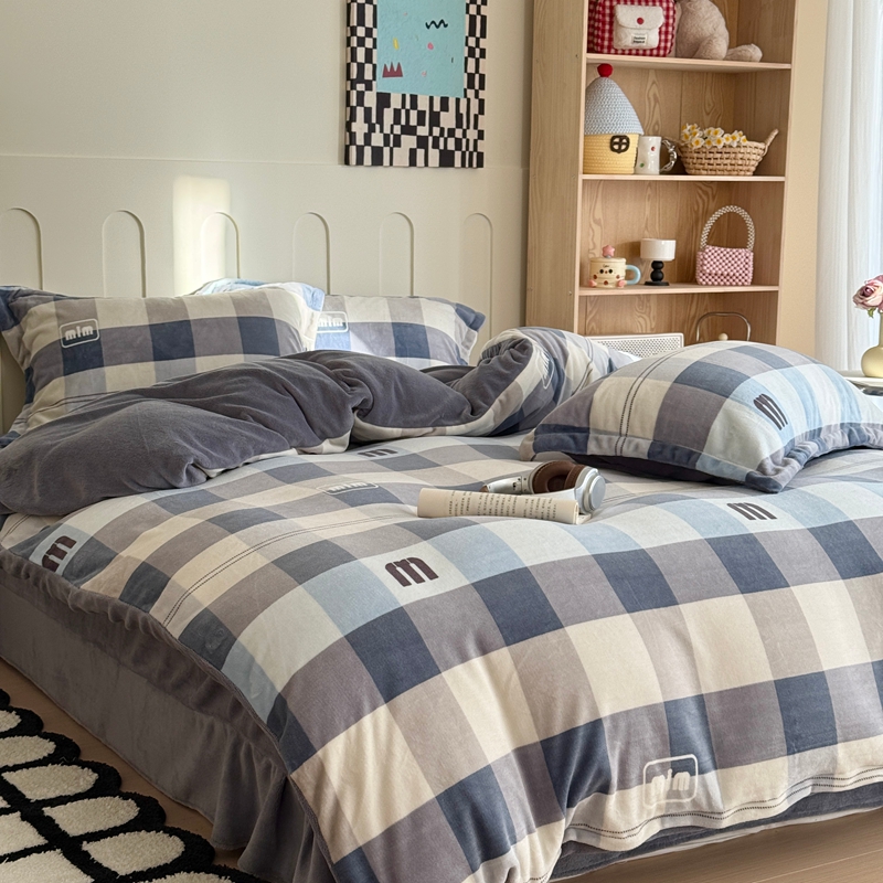 商品名称:于果 2025新款牛奶绒印花四件套 经典格