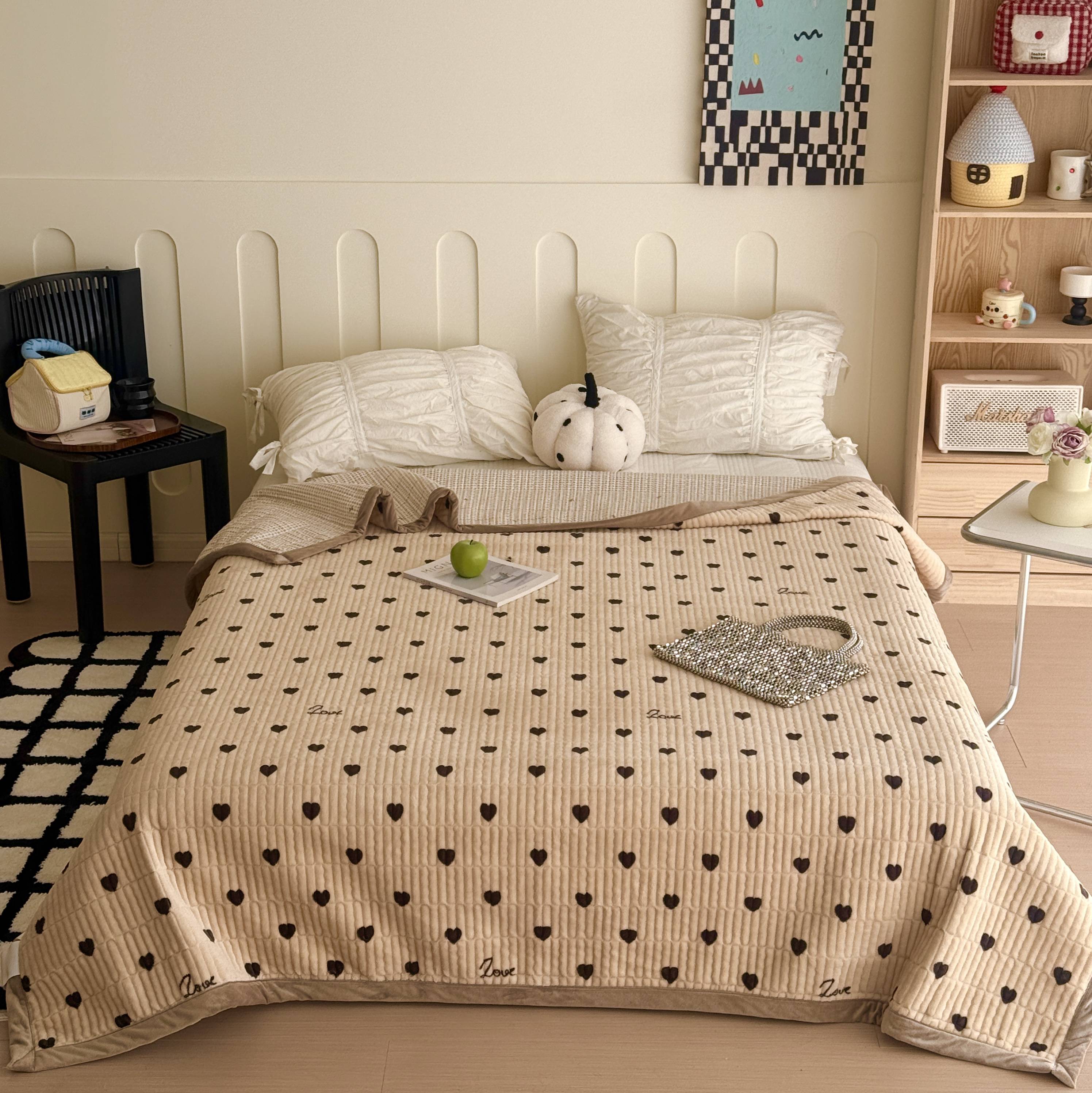 当前位置: 91家纺网 > 商品网购 > 床上用品 > 床盖 > 于果 2025新款牛奶绒床盖单床盖床盖单件 咖爱心