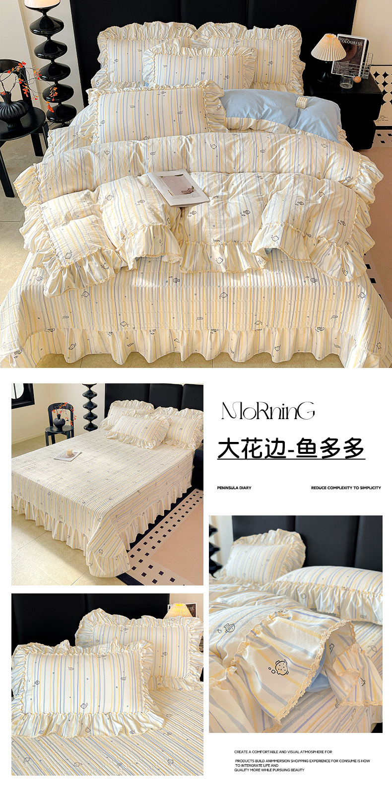 (总)富米莱(原臻工厂) 2024新款韩版提花条纹四件套,花边提花-豆沙条条,花边提花-粉条条,花边提花-蓝条条,花边提花-绿条条,花边提花-抹茶条条,花边提花-奶茶条条