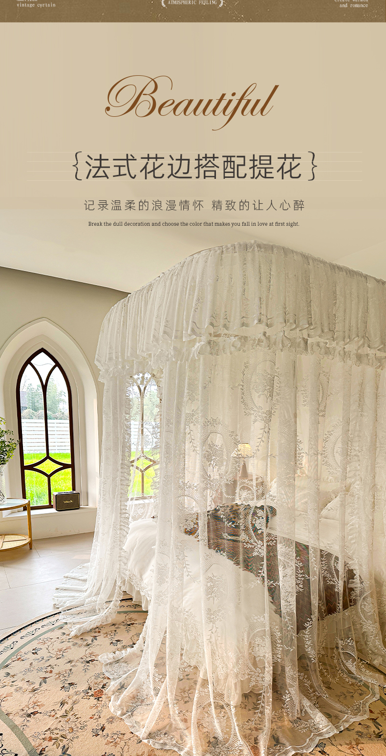 当前位置: 91家纺网 > 商品网购 > 床上用品 > 蚊帐 > 导轨蚊帐 > 都市缘蚊帐 2026新款303欧式浪漫导轨蕾丝提花蚊帐 303薇尔庄园-奶油白