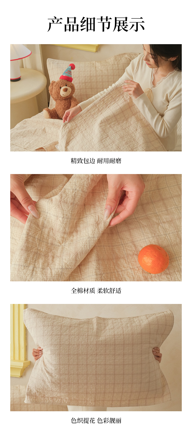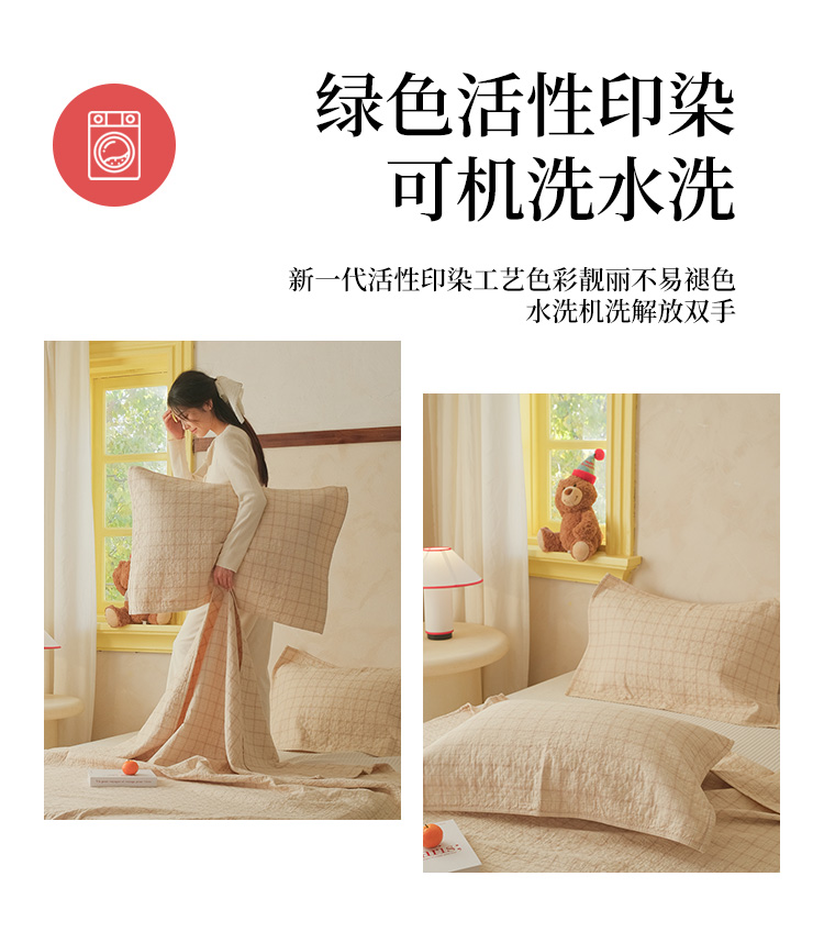 (总)沐瑟家纺 2025新款简约风多功能纱布盖毯纱布毯子毛巾被床盖沙发巾单毯枕巾枕套三件套,H本色,H橙色,H咖色,大马士革本色