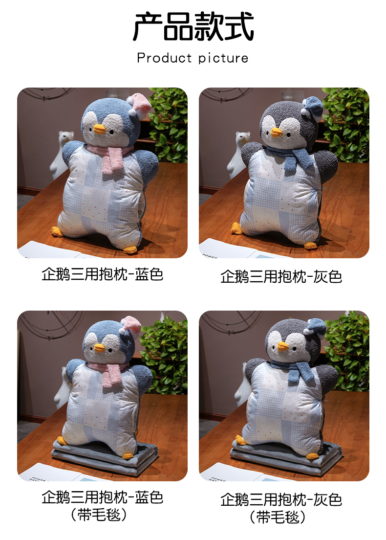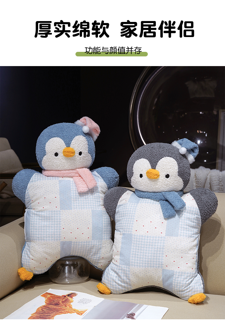 商品名称:仟亿莱 2025新款ins企鹅豆袋三用玩偶抱枕 三用灰色企鹅-2