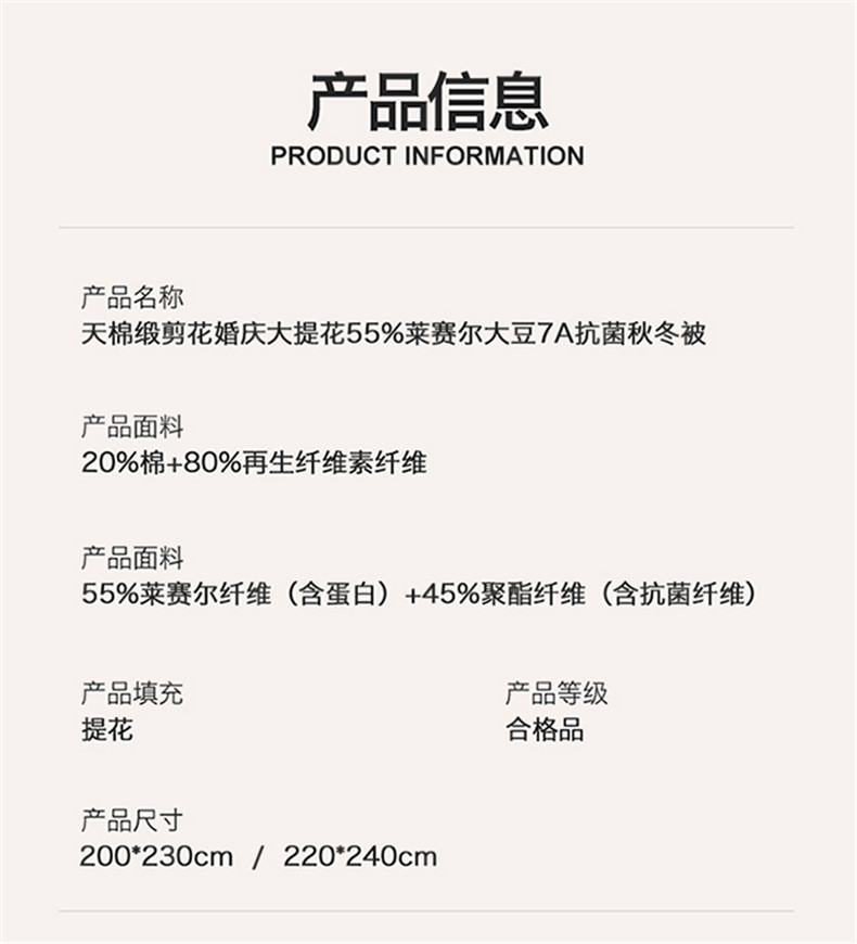 (总)头等舱 2025新款天棉缎剪花婚庆大提花55莱赛尔大豆7A抗菌秋冬被(模特图),吾家有喜-本白,吾家有喜-嫩粉,配包装