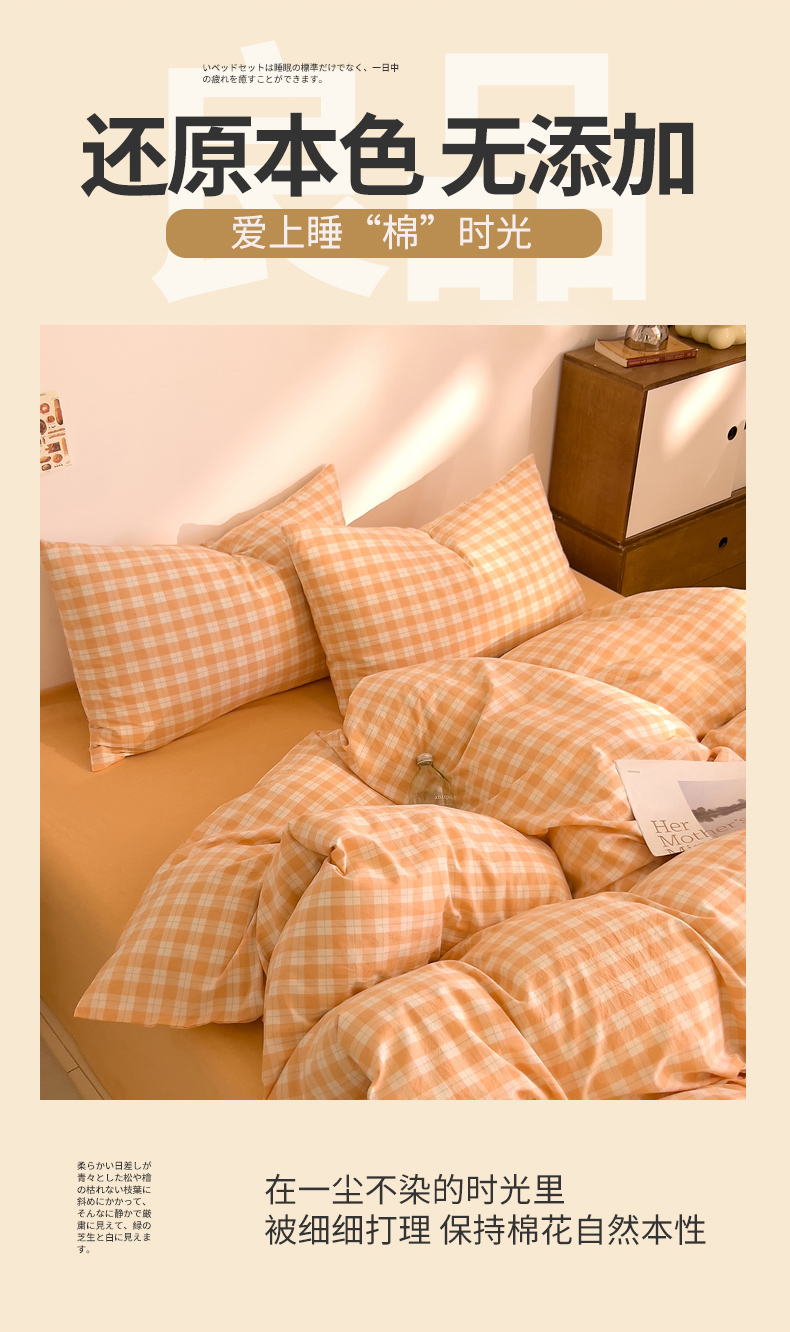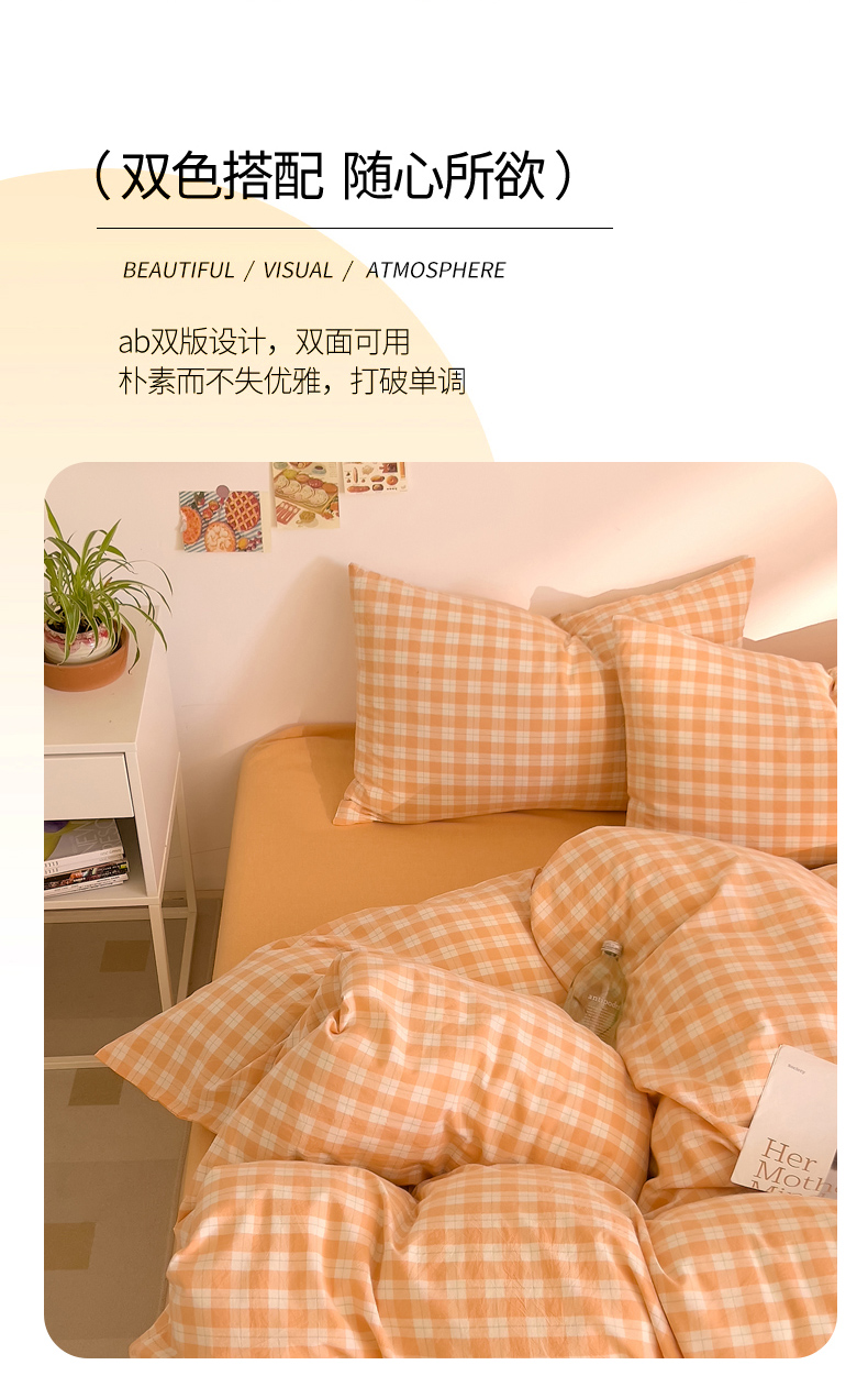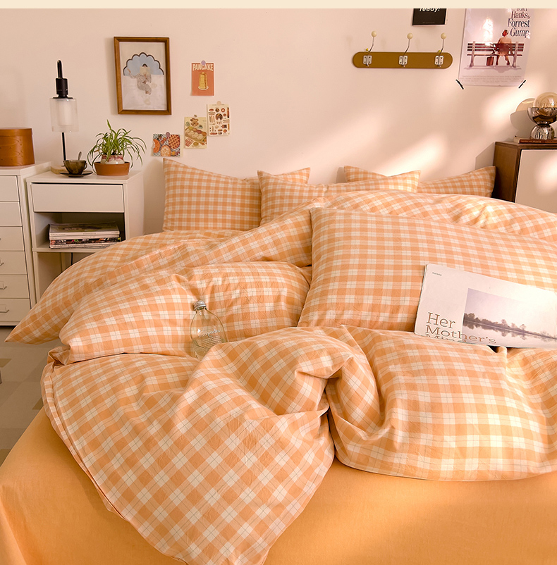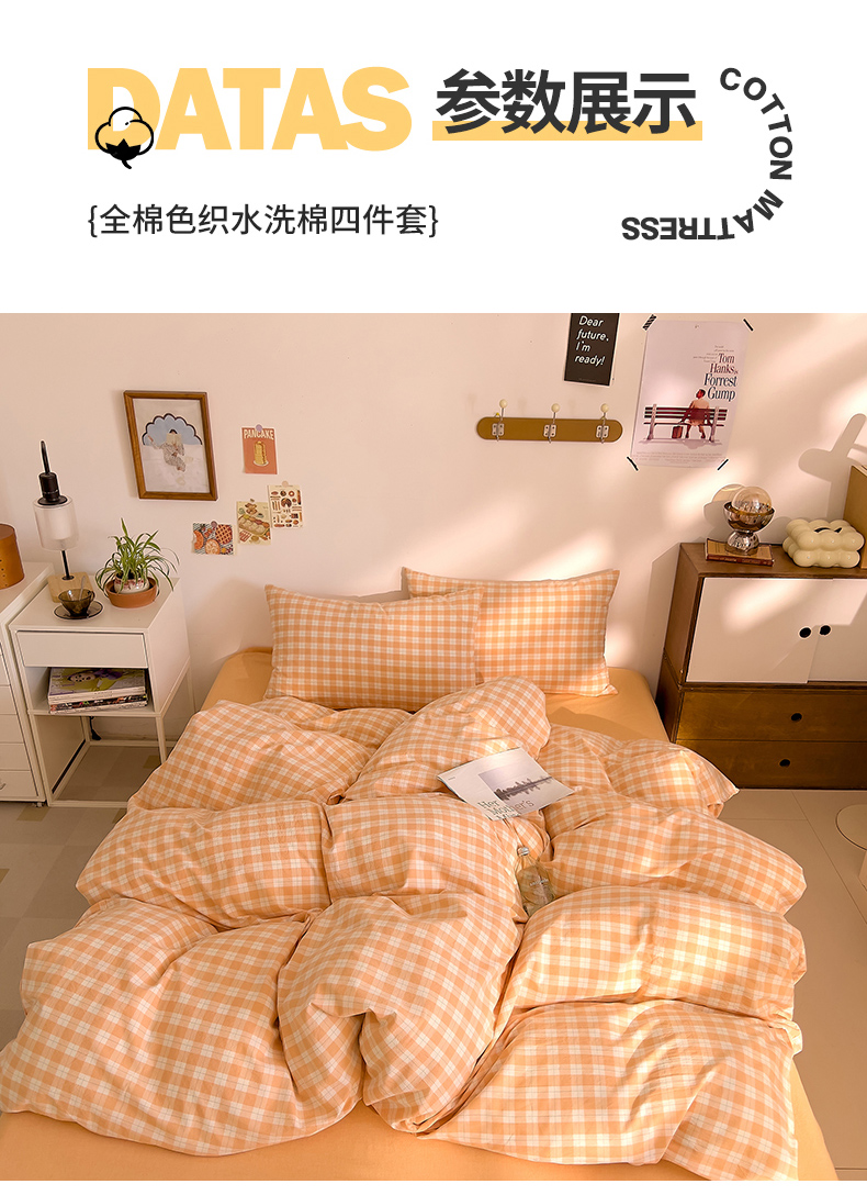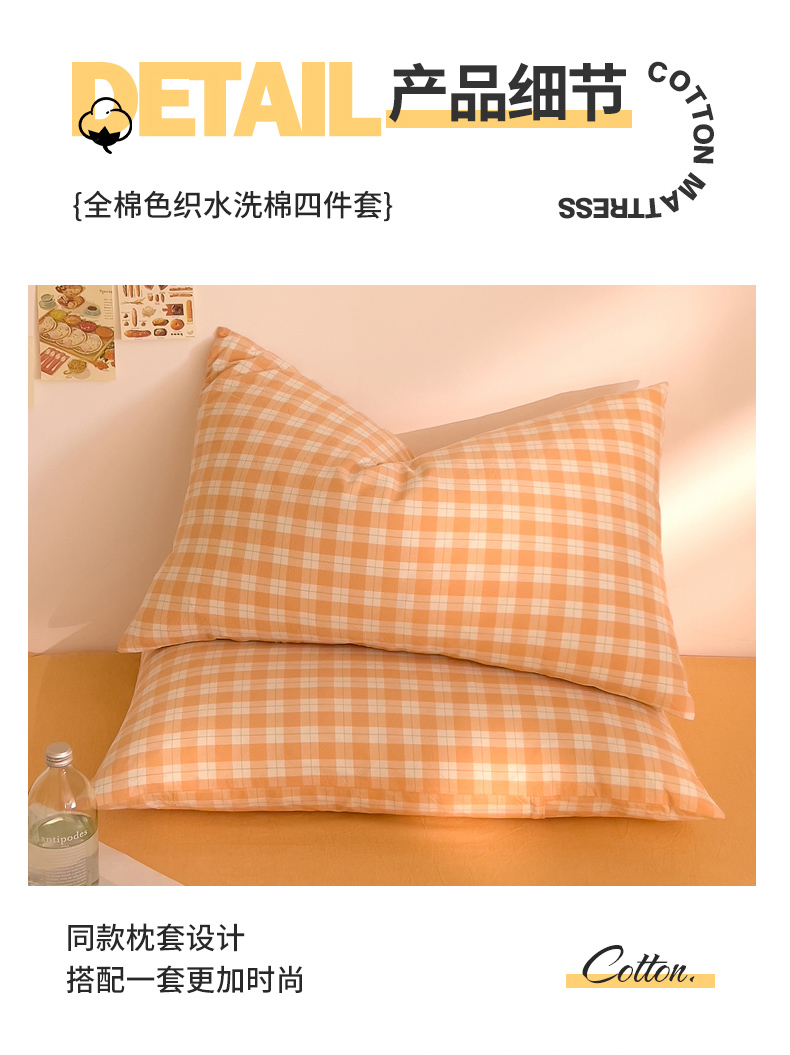当前位置: 91家纺网 > 商品网购 > 床品套件 > 四件套 > 全棉普通四件套 > DoDo 兜兜 2026新款全棉纯棉A类条格水洗棉四件套-可定做尺寸 半棠-桔