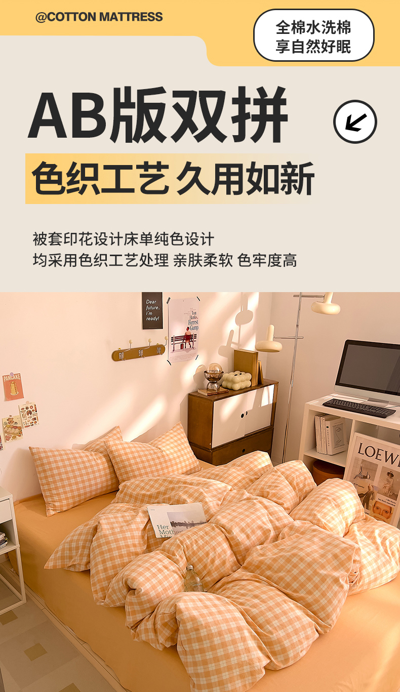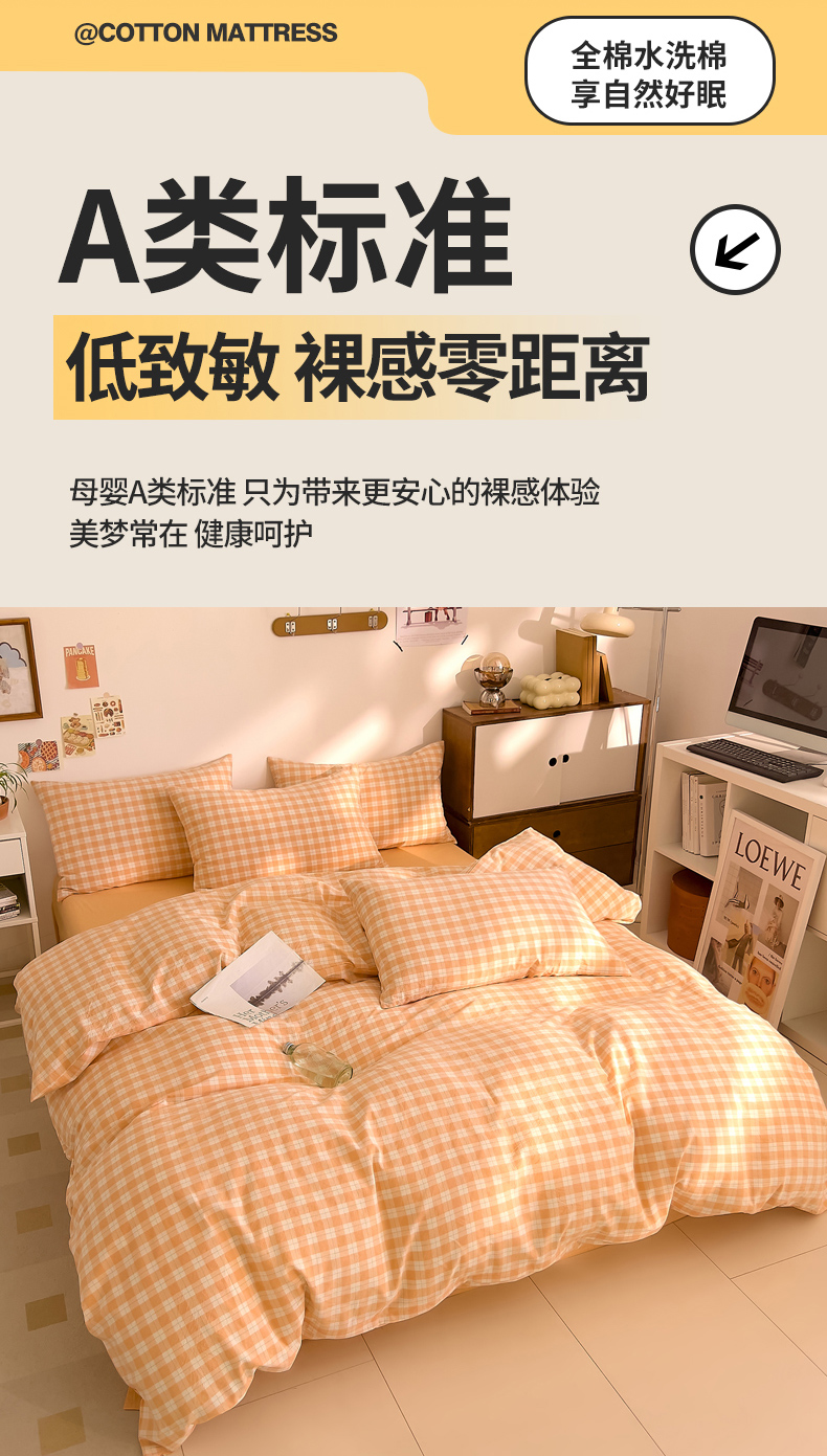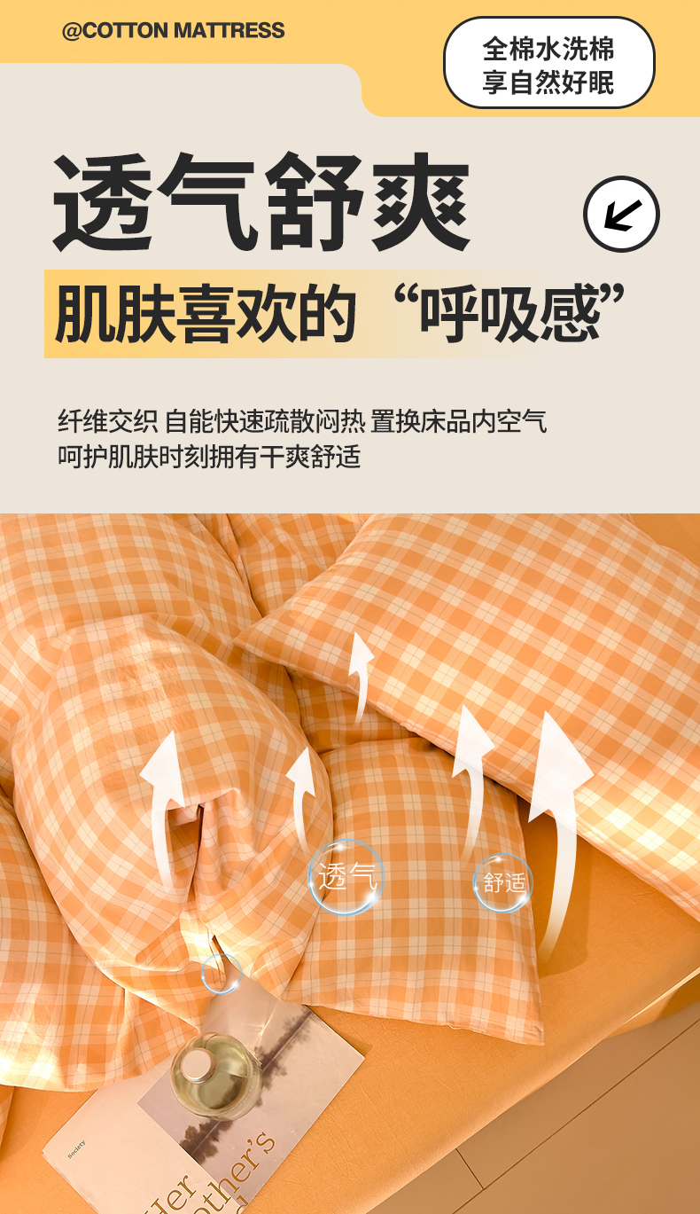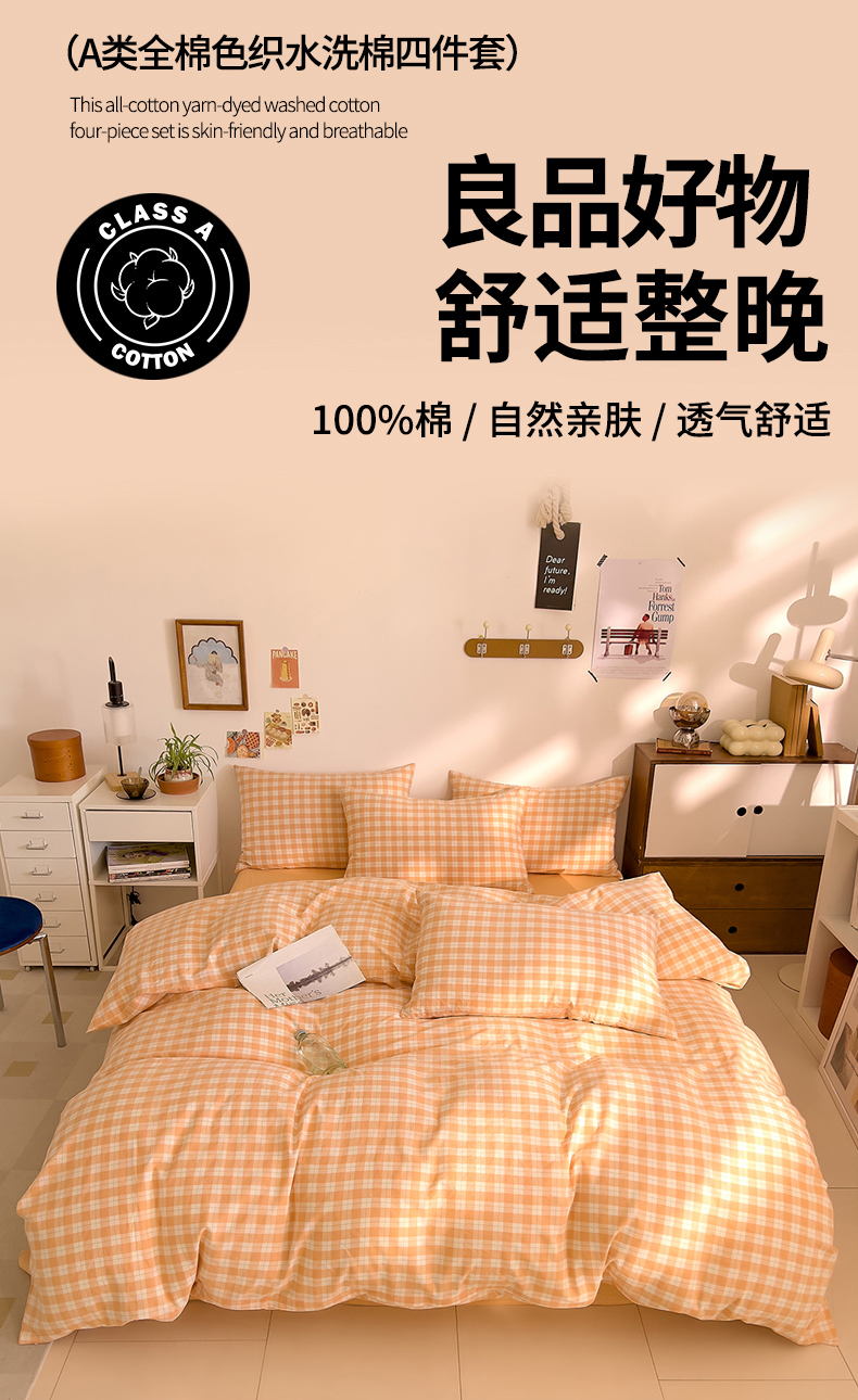 当前位置: 91家纺网 > 商品网购 > 床品套件 > 四件套 > 全棉普通四件套 > DoDo 兜兜 2026新款全棉纯棉A类条格水洗棉四件套-可定做尺寸 半棠-桔