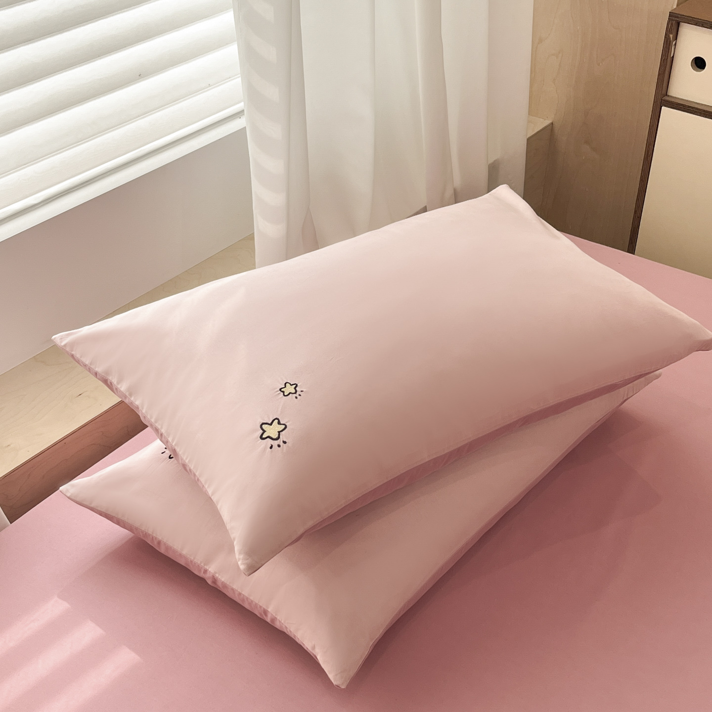 (总)泽西家纺+V17798841158发大图 2026新品全棉13376刺绣简约星星枕套,宾利蓝+灰,豆绿+高级灰,牛仔蓝+奶茶,浅绿+豆绿,浅喜粉,浅喜粉+暖豆沙,晴空蓝+牛仔蓝,水雾蓝,微微紫+香芋紫,西柚橙+银河灰,银灰+西柚橙