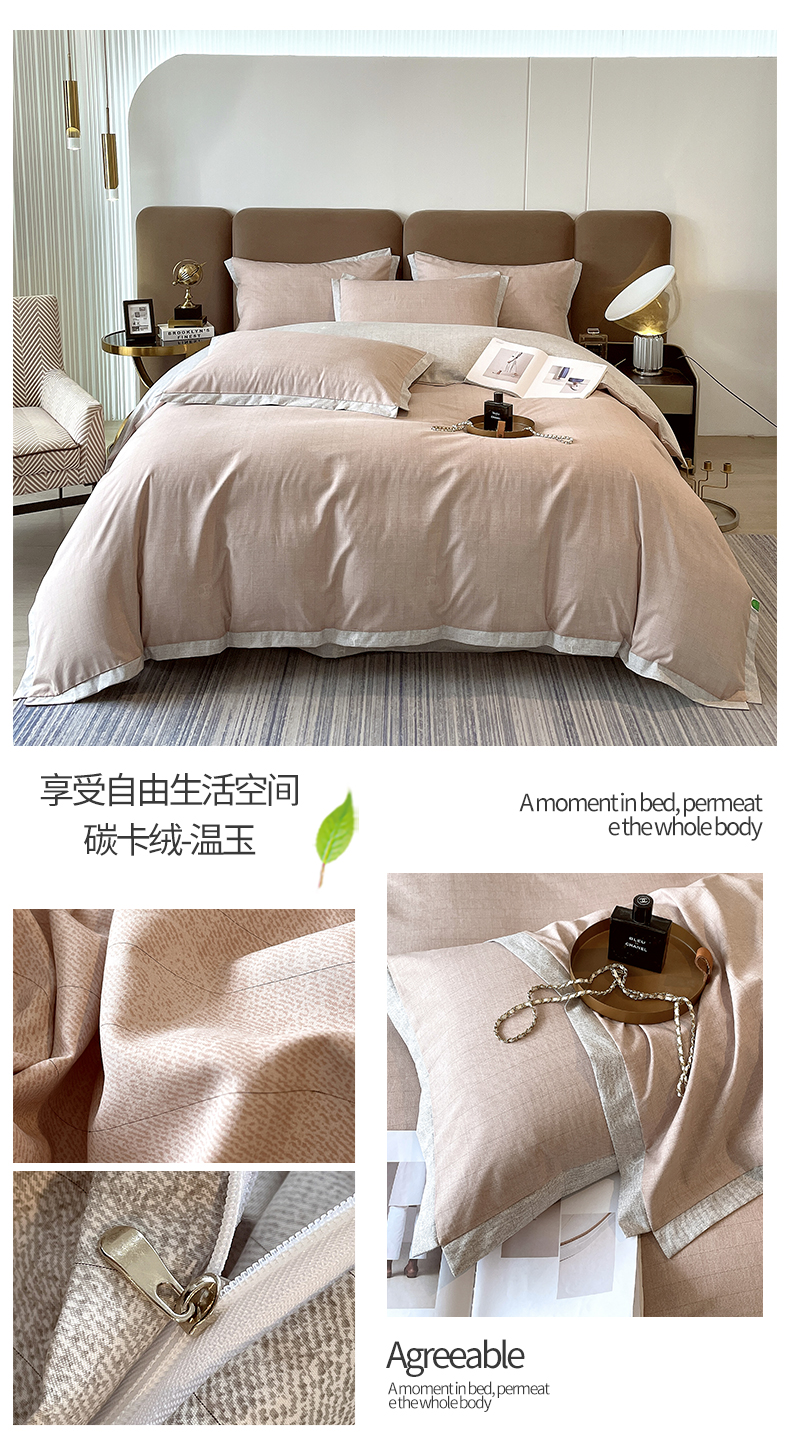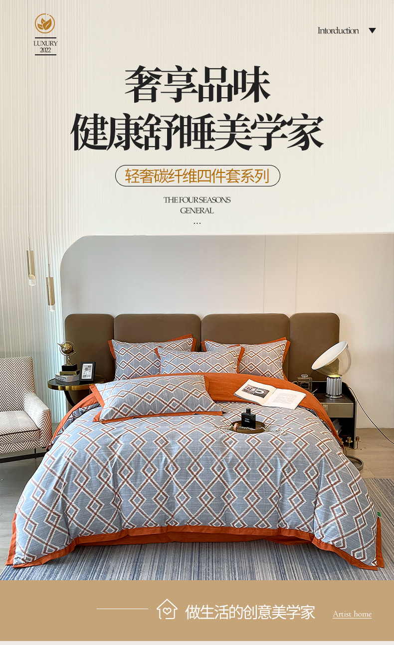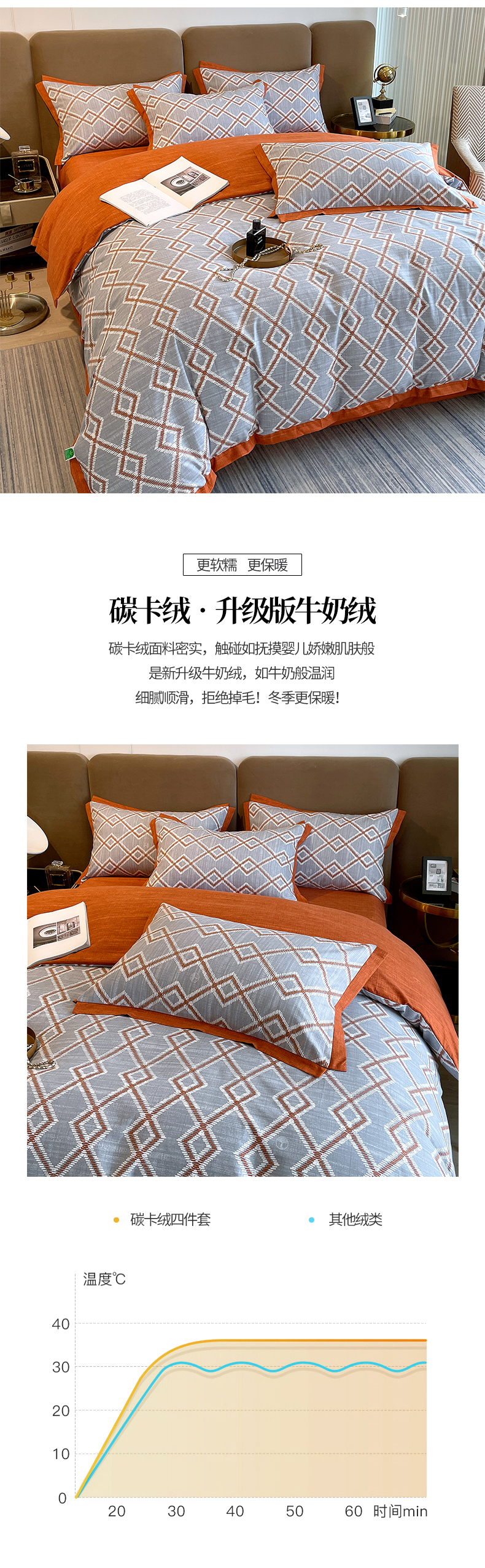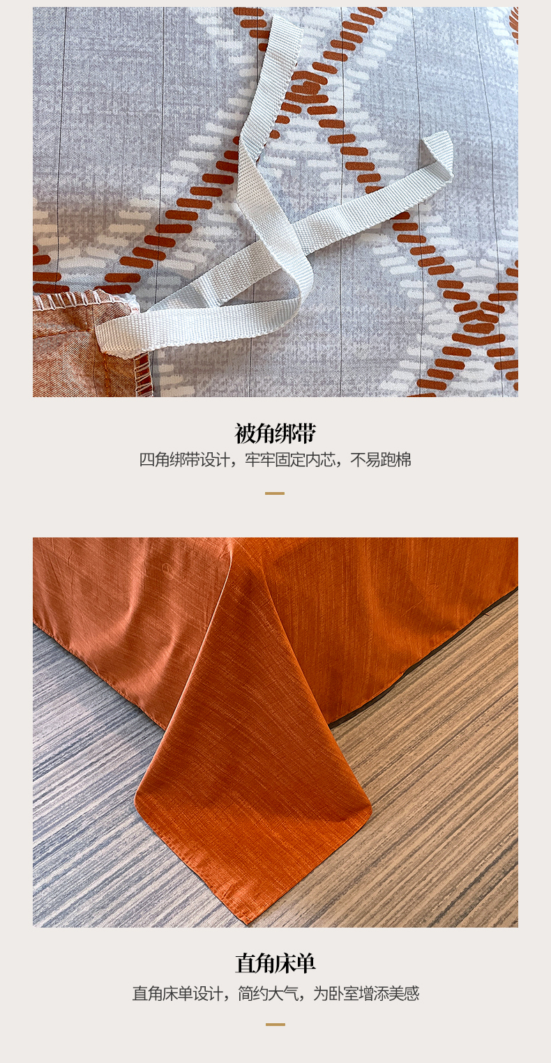 商品名称:恩和家纺 2026新款森能量碳纤维环保四件套系列 碳卡绒-桔格烟灰