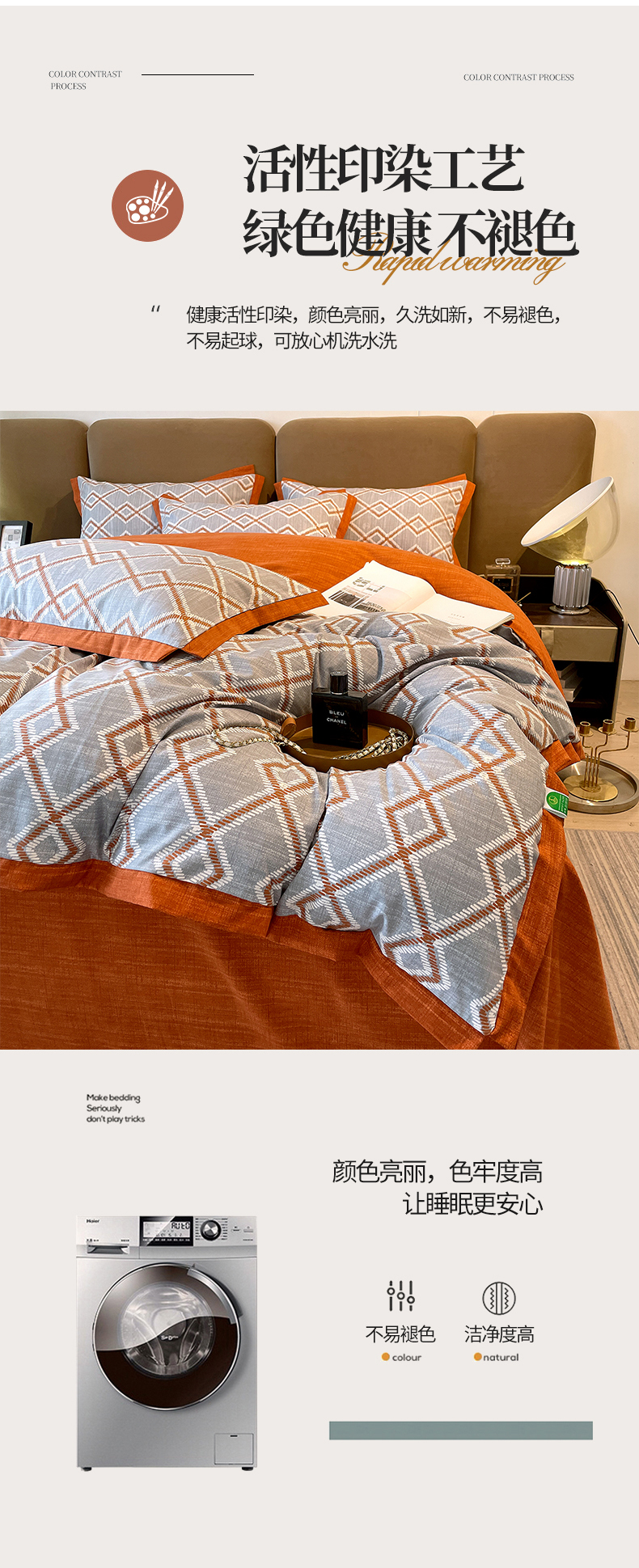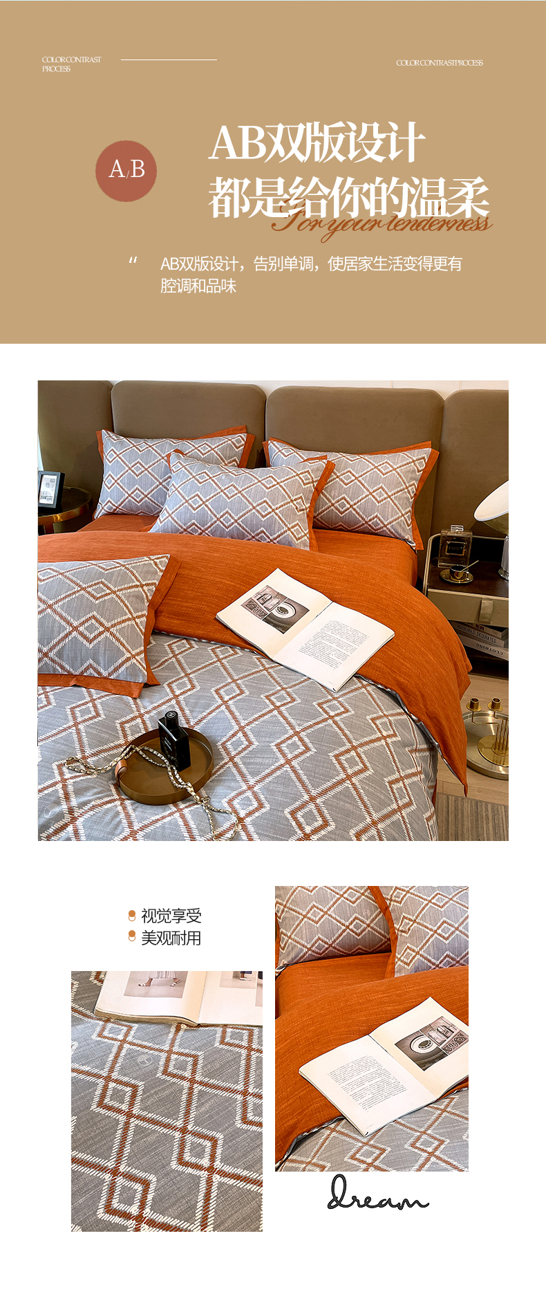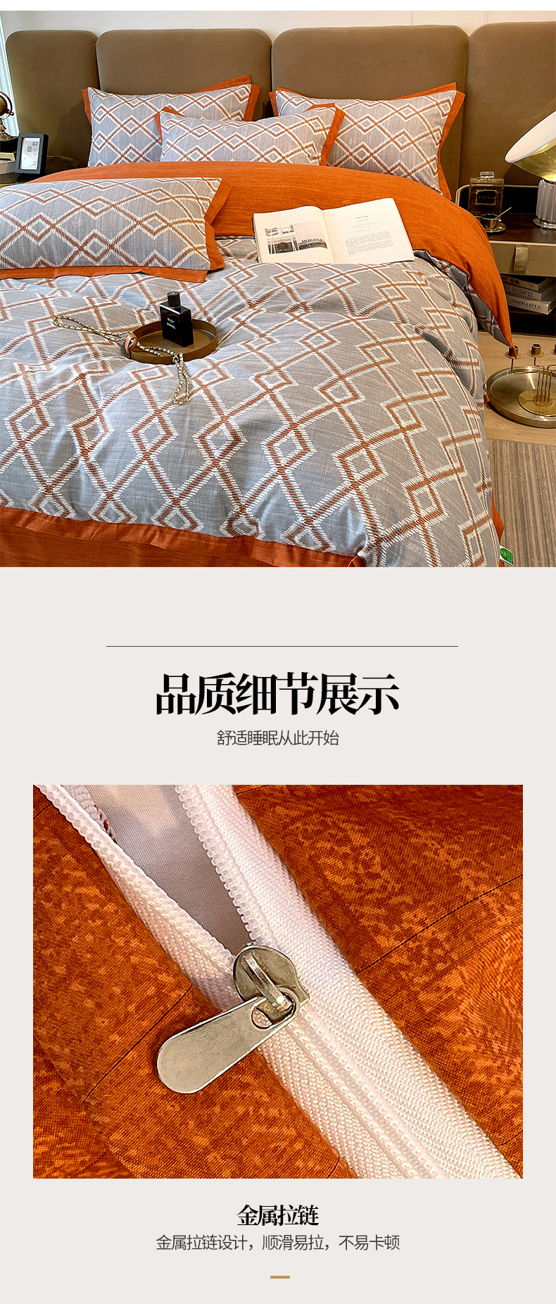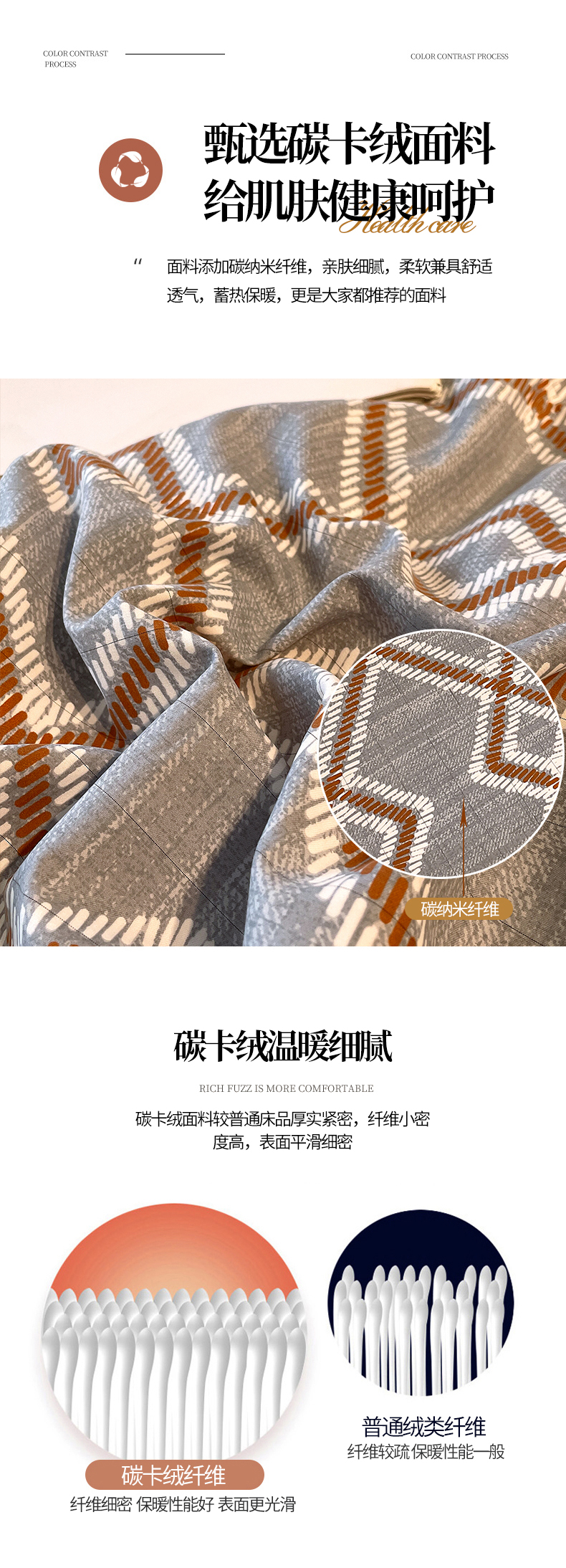 商品名称:恩和家纺 2026新款森能量碳纤维环保四件套系列 碳卡绒-桔格烟灰