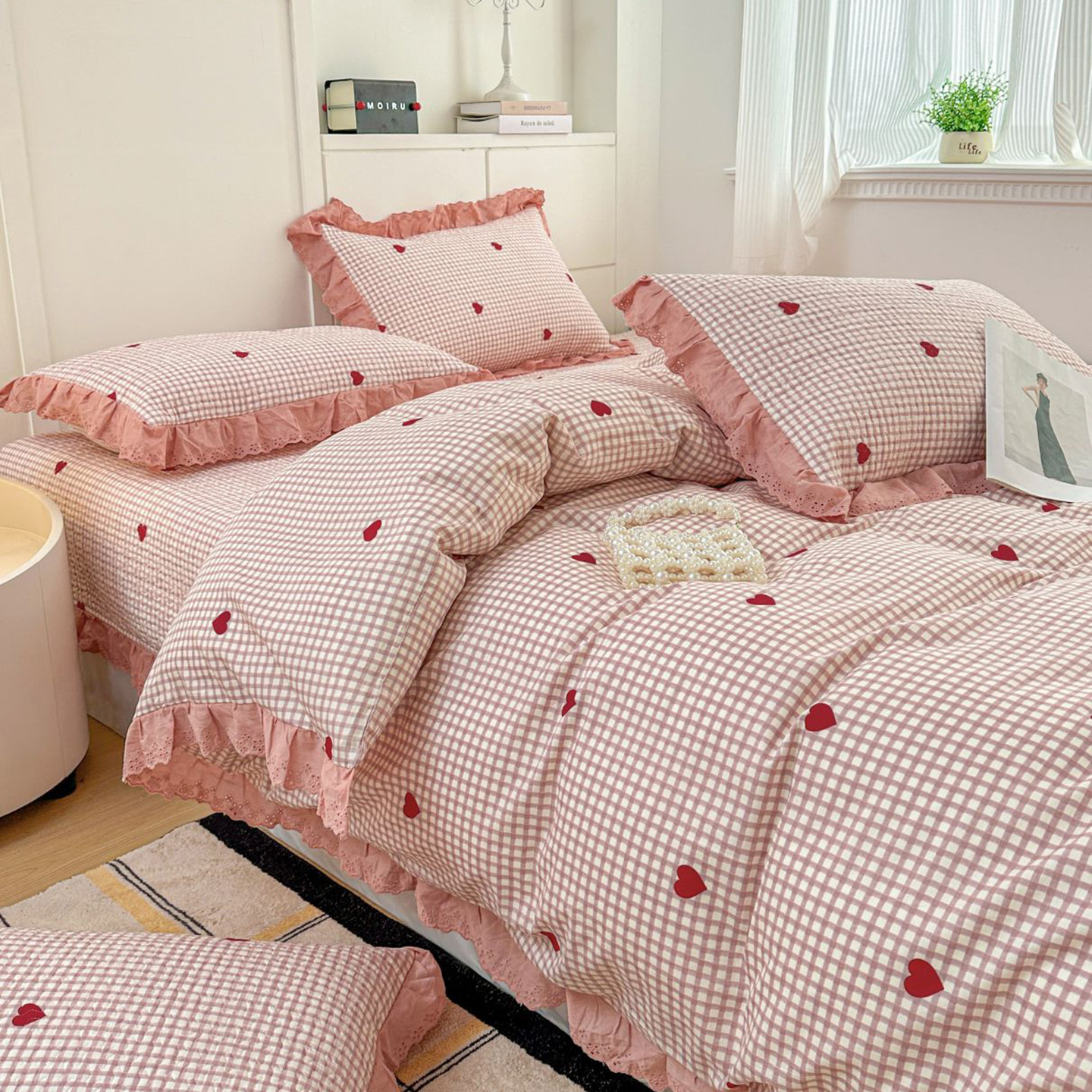 暖居 2026新款支持定制法式花边纯棉榻榻米四件套全棉大炕盖三件套四季通用 奶油点点