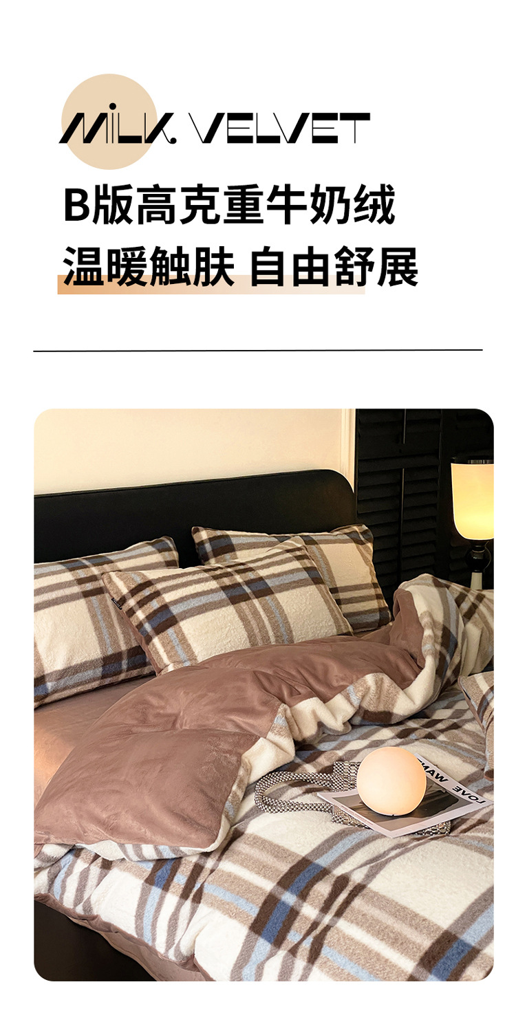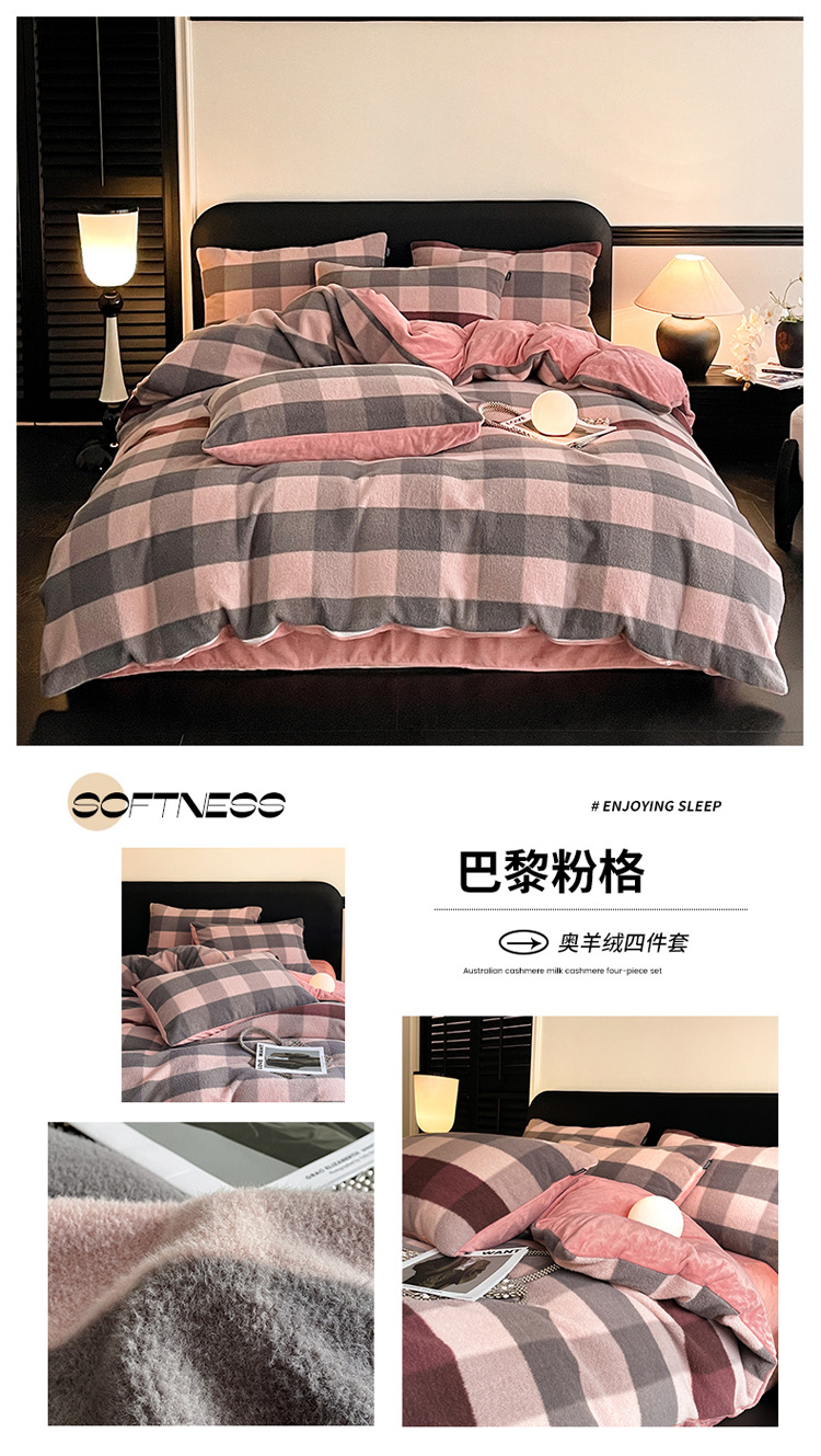 (总)良品汇馆 2026新款羊绒牛奶绒床上四件套加厚加绒床品保暖毛绒床品,咖啡白格,美拉德灰棕格,挪威蓝格,巴黎粉格,安哥拉红格,意威-奶白,意威-深灰
