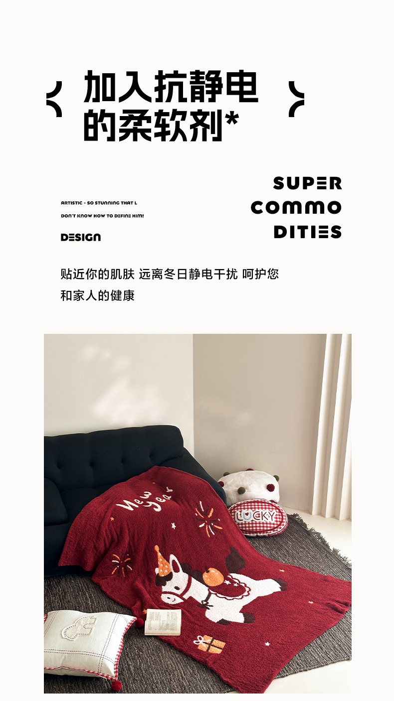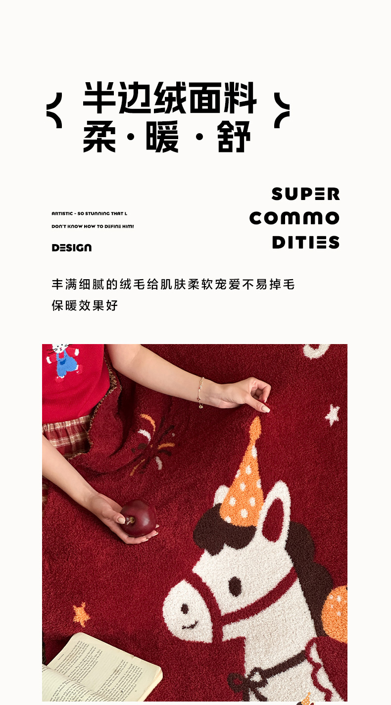 商品名称:(总)RYB红黄兰 2026新款设计师原创多功能针织半边绒毛毯午休毯盖毯加厚毯子