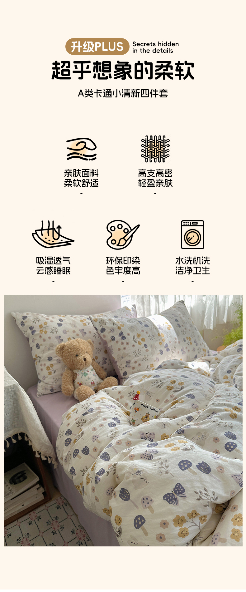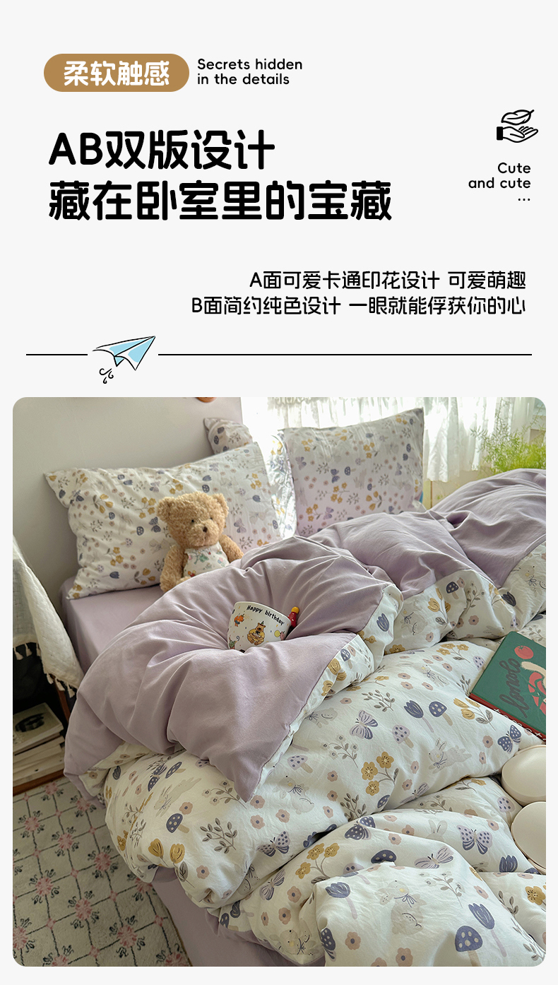 当前位置: 91家纺网 > 商品网购 > 床品套件 > 四件套 > 水洗棉四件套 > 沐芷 2026 【提供买家秀】A类软糯水洗棉四件套床上宿舍三件套床单被套 兔野仙踪