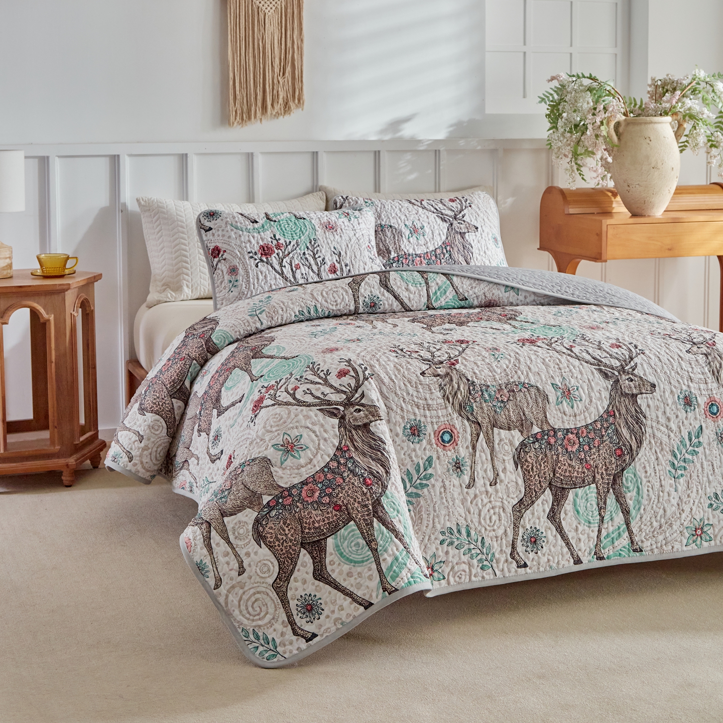 (总)温宁2025新款跨境外贸专供正方格床盖,绿色,米色,银灰