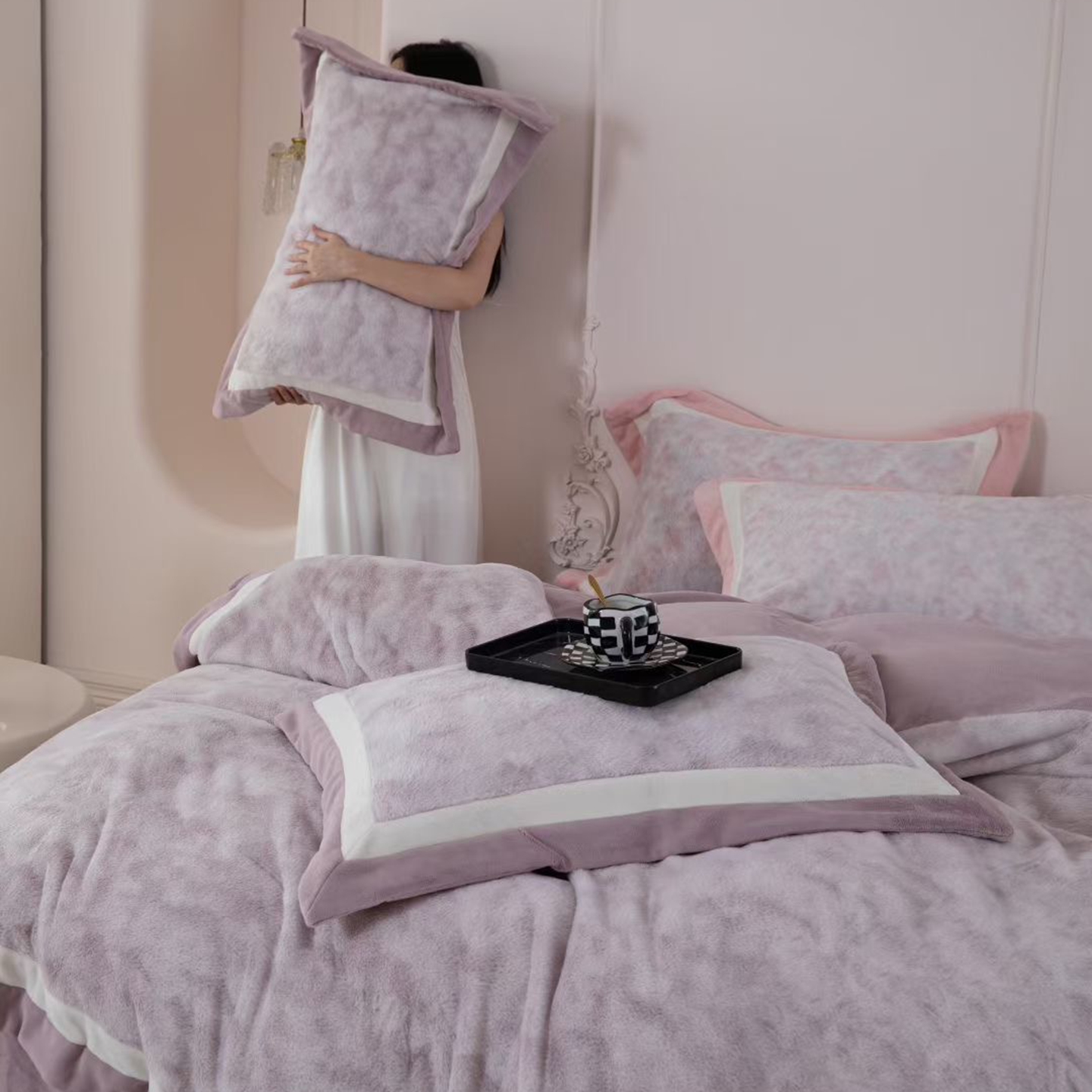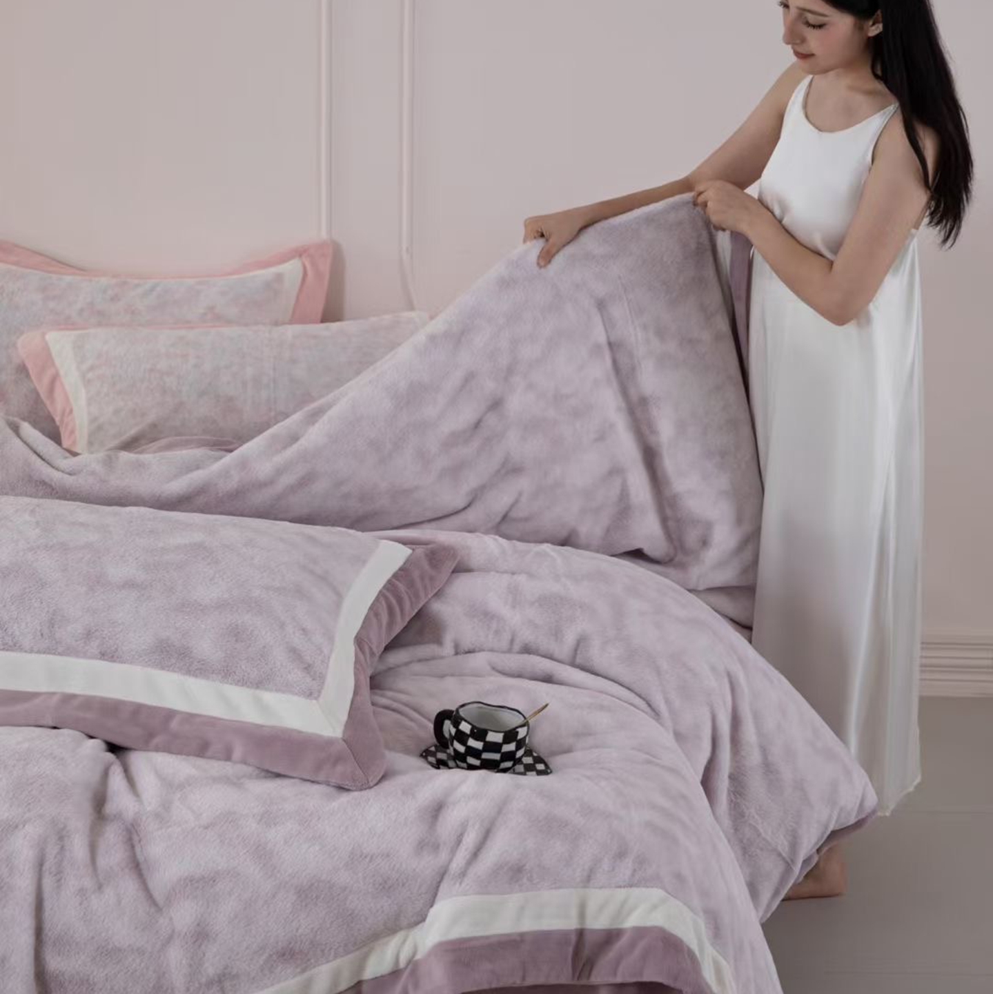 (总)玖琳家纺 2026新款高端高克重水貂绒四件套-戴思系列,戴思 粉,戴思 灰,戴思 卡其,戴思 蓝,戴思 青草绿