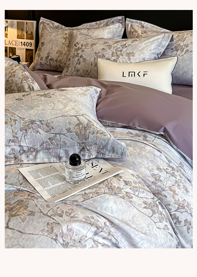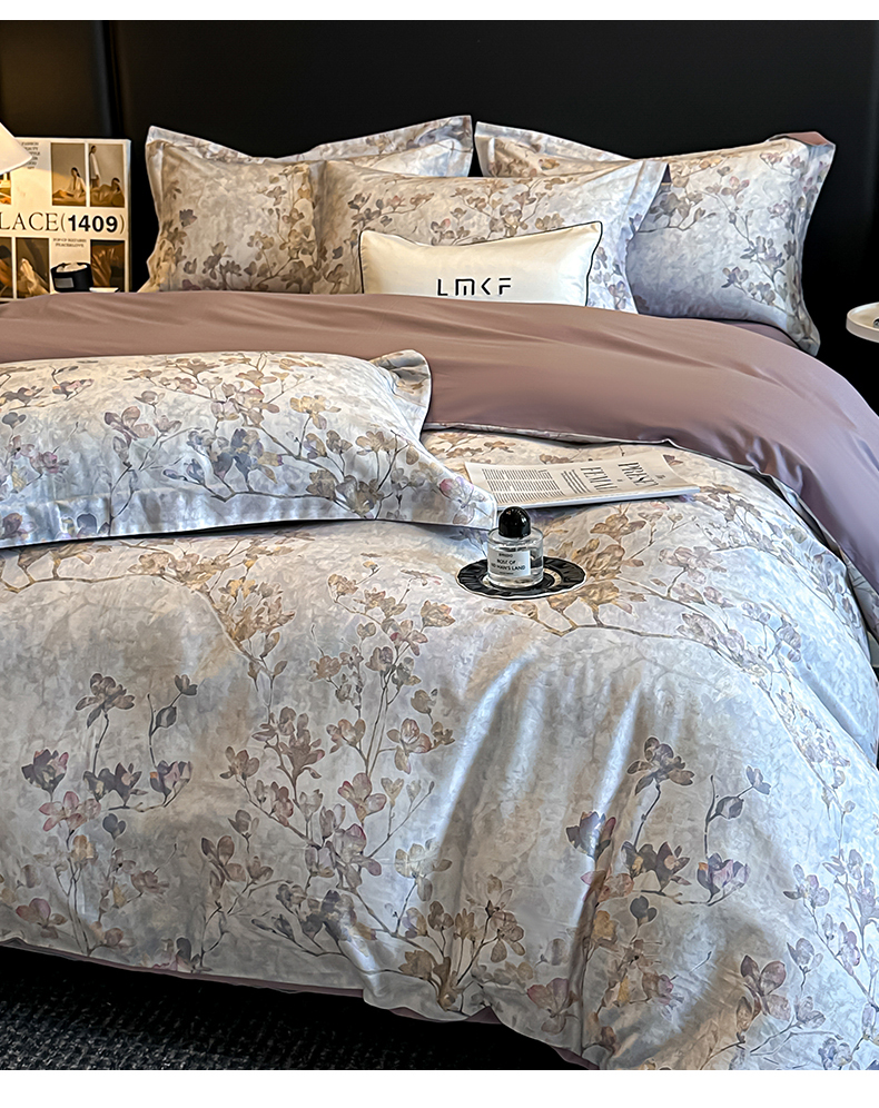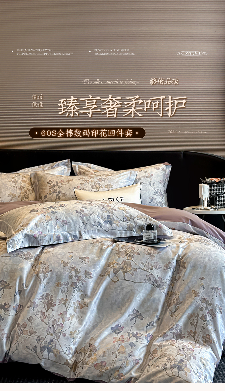 蓝米卡夫 2026春季新款-60S长绒棉数码印花贡缎系列四件套(礼盒) 赛里木花