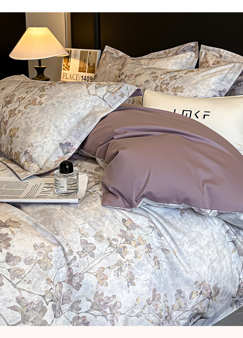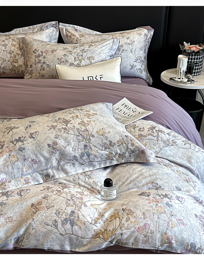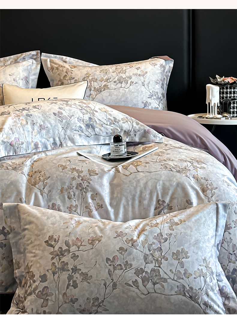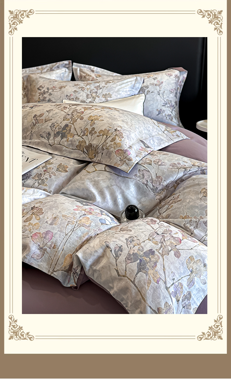 蓝米卡夫 2026春季新款-60S长绒棉数码印花贡缎系列四件套(礼盒) 赛里木花