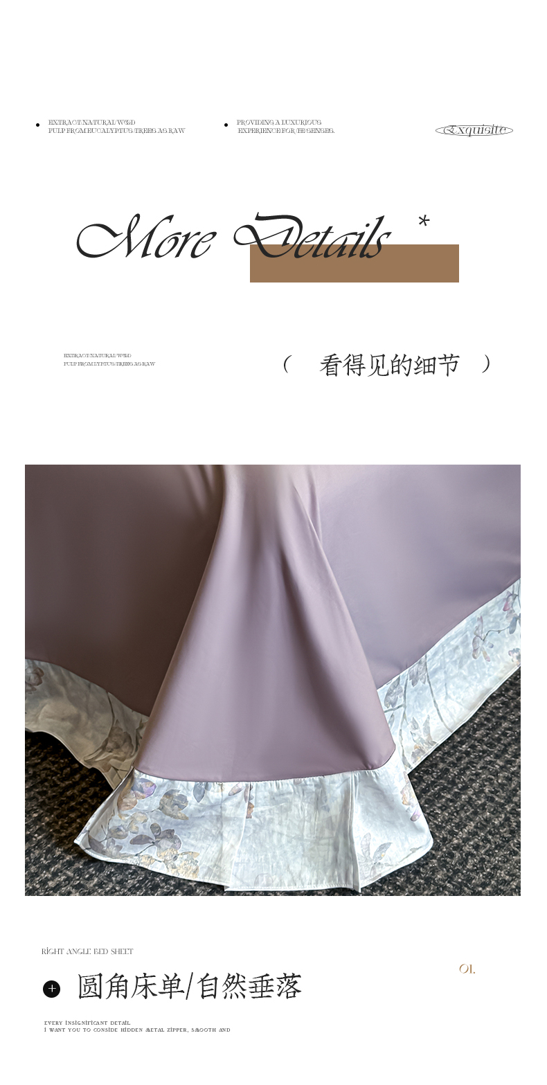 商品名称:蓝米卡夫 2026春季新款-60S长绒棉数码印花贡缎系列四件套(礼盒) 赛里木花
