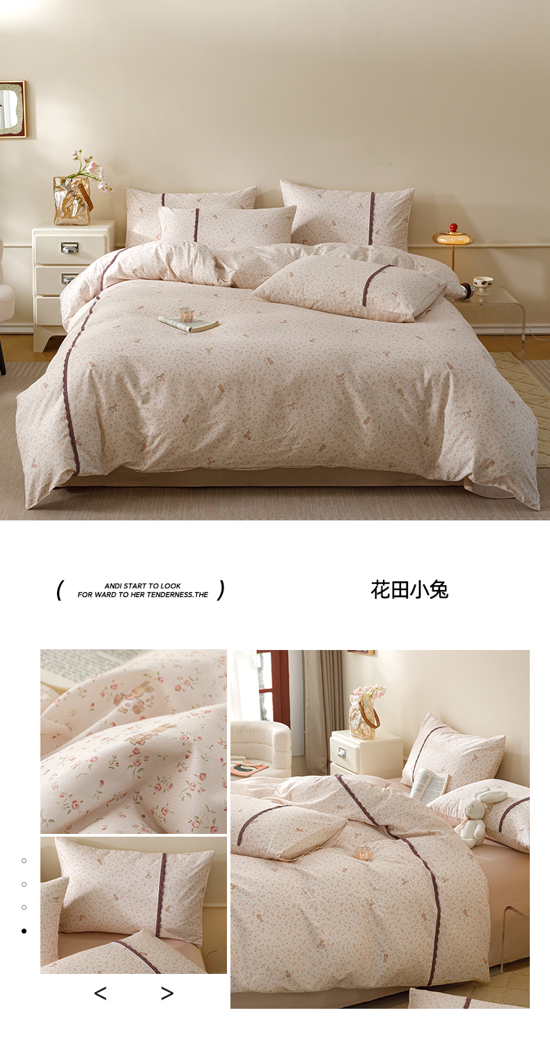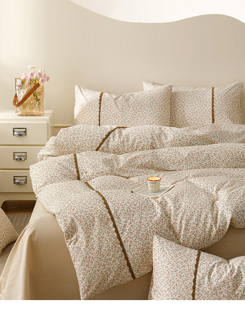 当前位置: 91家纺网 > 商品网购 > 床品套件 > 四件套 > 全棉普通四件套 > 简宜家居(朝初家纺) 2026新款13070全棉纯棉40支斜纹蕾丝四件套 含苞蔷薇