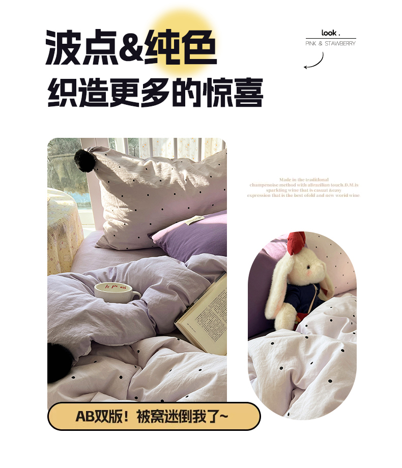 (总)轻奢坊 2026新款水洗棉波点可拆卸毛球四件套