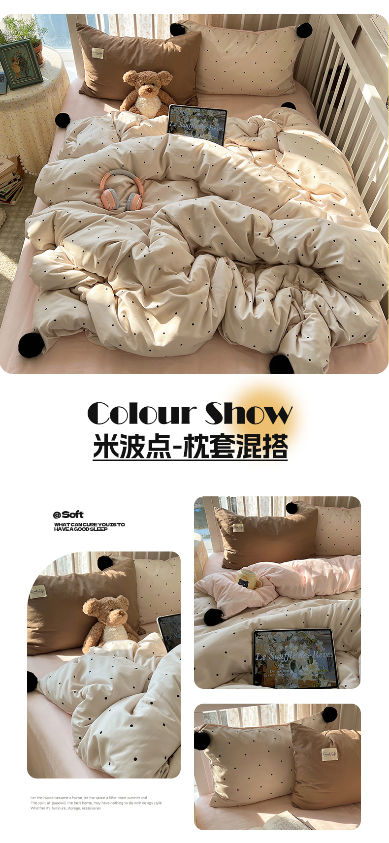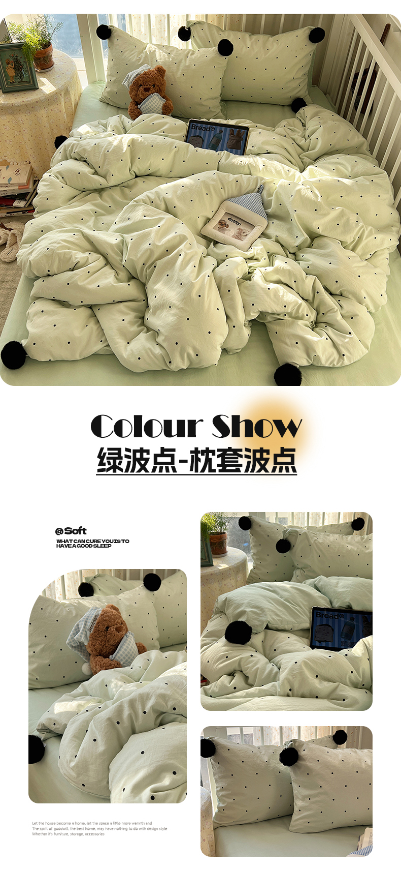 商品名称:(总)轻奢坊 2026新款水洗棉波点可拆卸毛球四件套
