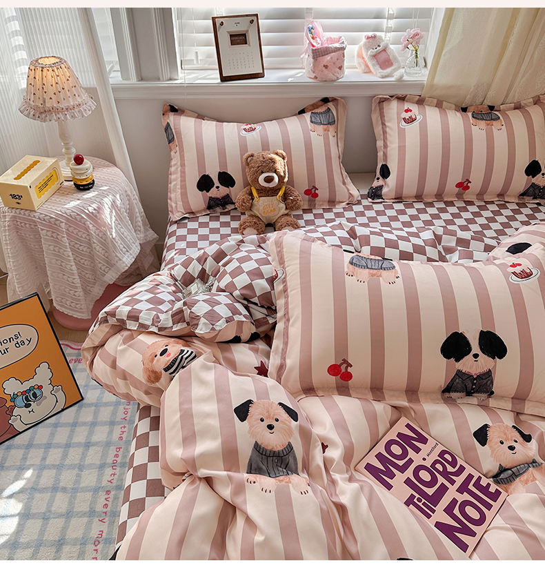(总)卡斯诺 2025新款芦荟棉四件套7月新花型,萌萌狗,布丁狗,丛林猫,蝶恋花,粉色小熊,开心树,绿野仙踪,美好时光,萌兔宝贝,迷恋,喵星人,墨迹,甜心汪汪,旺旺小狗,幸运女孩,熊猫日记,着迷