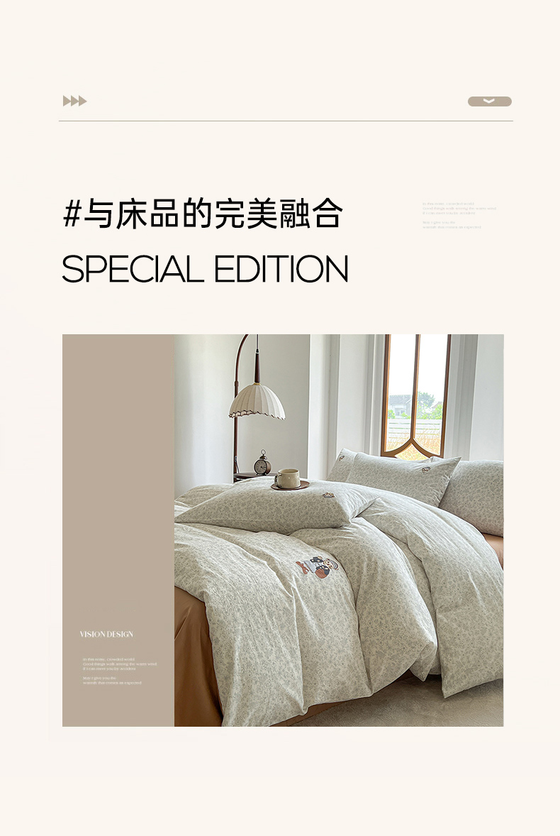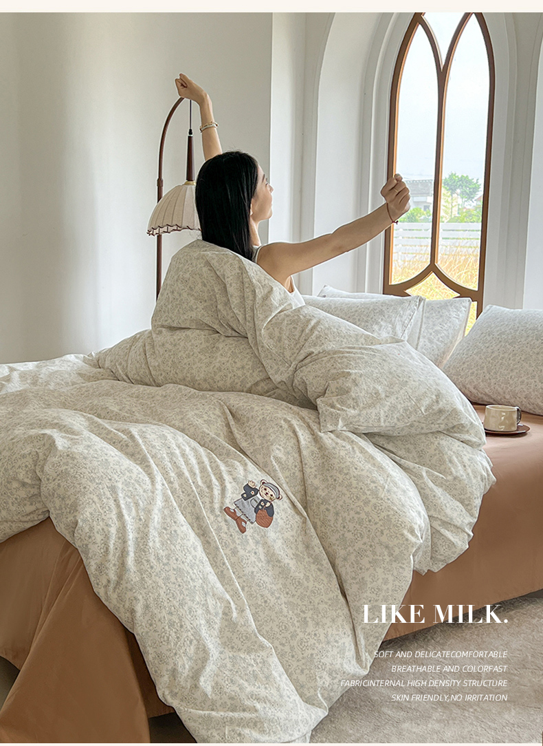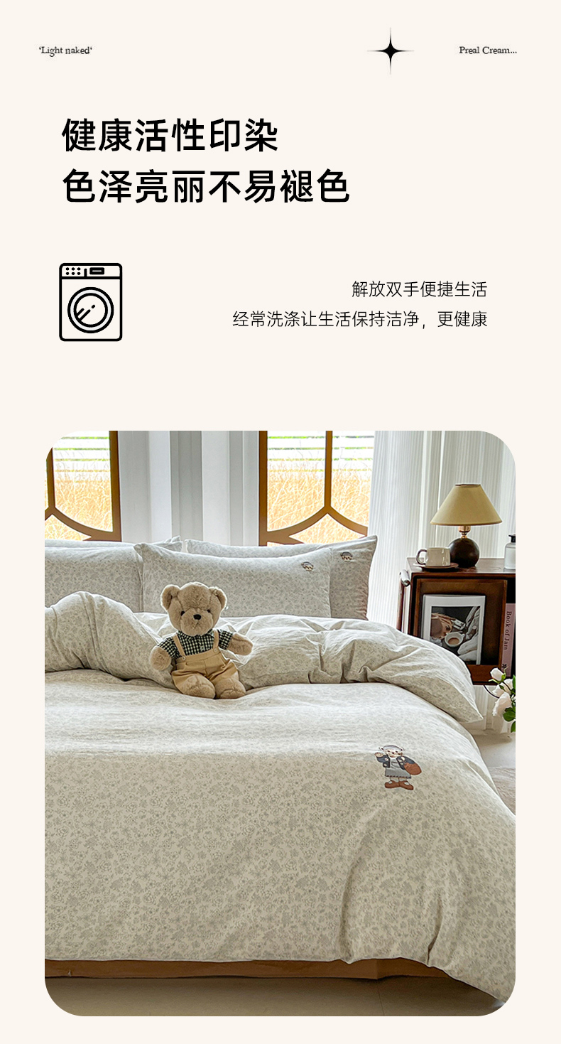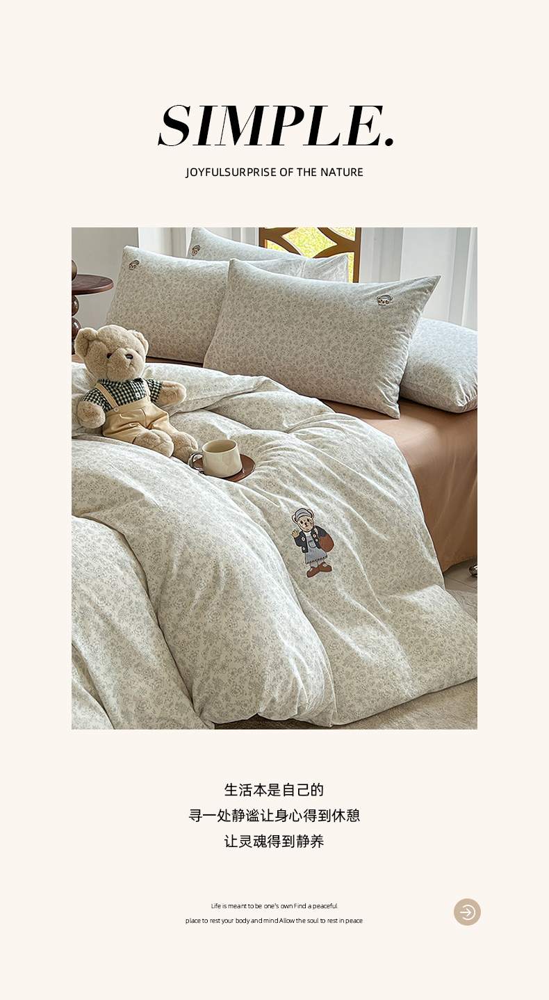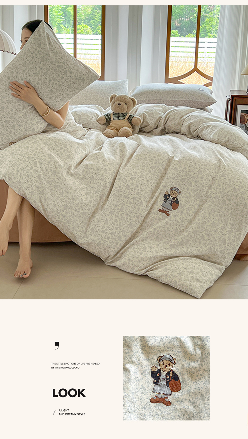 当前位置: 91家纺网 > 商品网购 > 床品套件 > 四件套 > 水洗棉四件套 > 欣晴家纺 2026新款软糯云朵棉水洗棉刺绣三件套四件套嘟嘟小熊系列(风格1) 清风