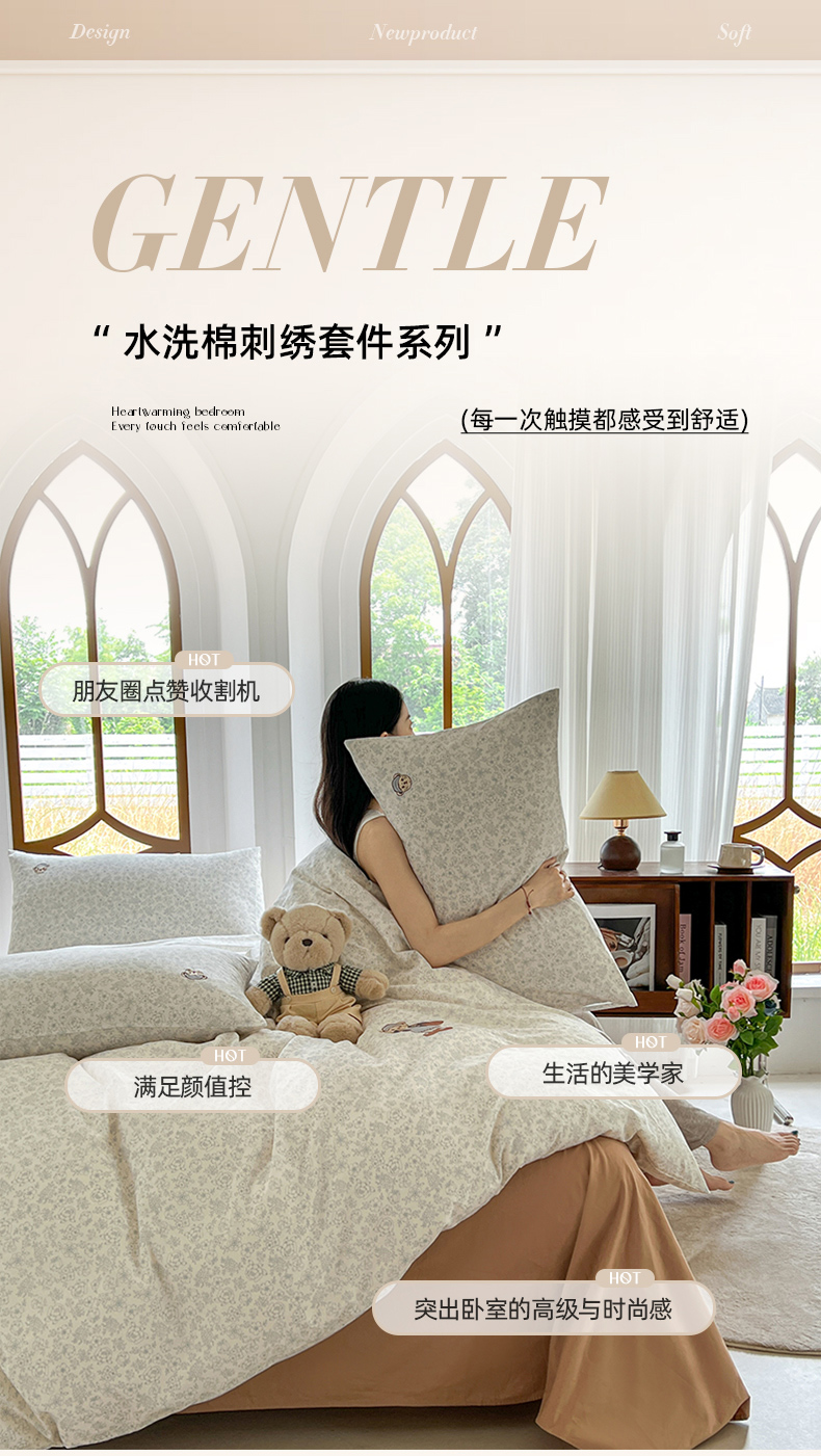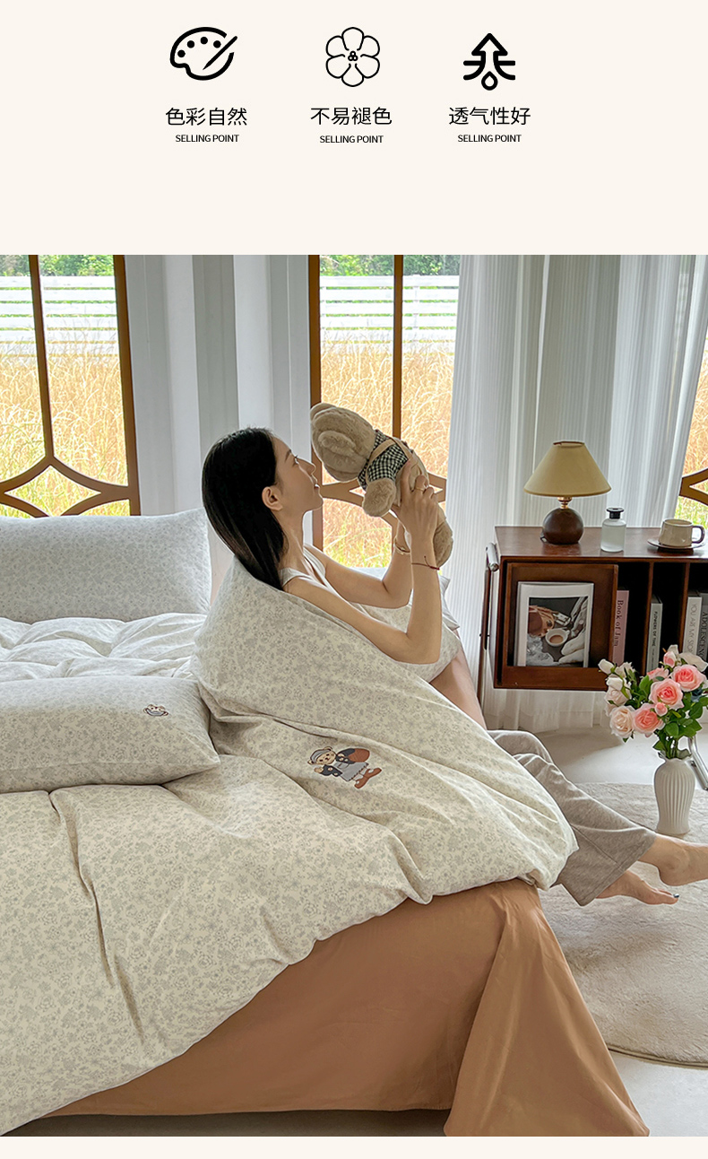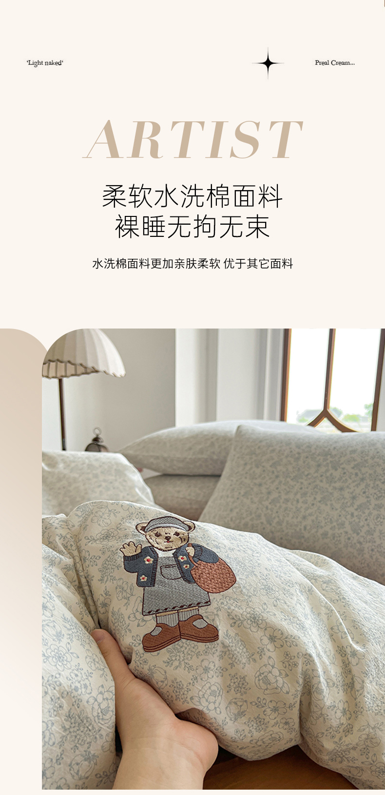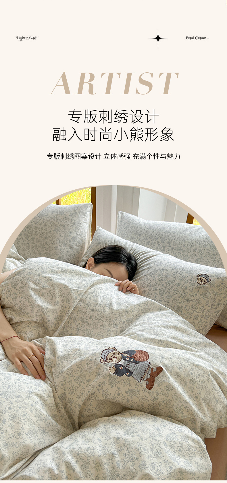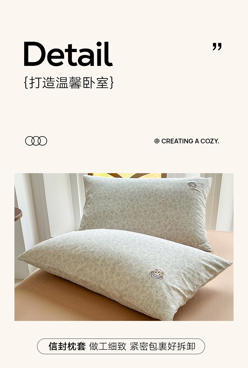 当前位置: 91家纺网 > 商品网购 > 床品套件 > 四件套 > 水洗棉四件套 > 欣晴家纺 2026新款软糯云朵棉水洗棉刺绣三件套四件套嘟嘟小熊系列(风格1) 清风