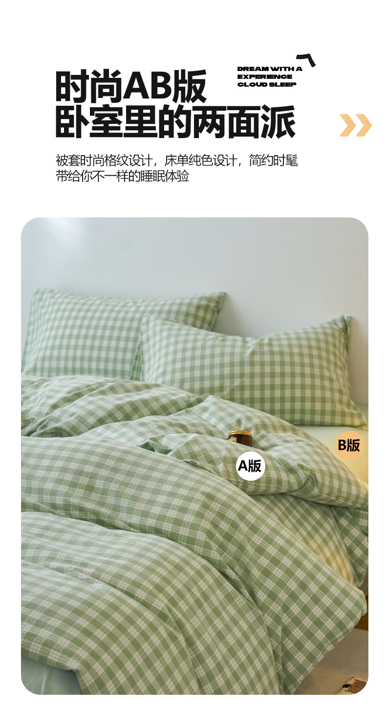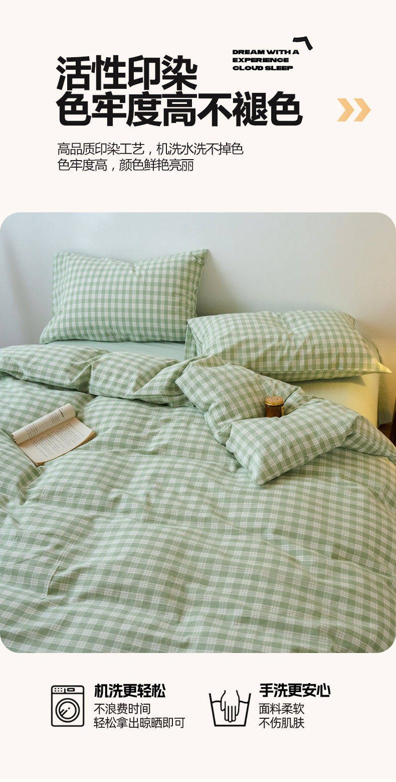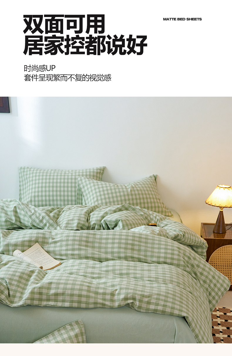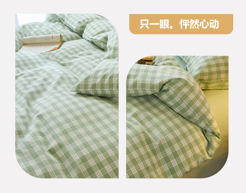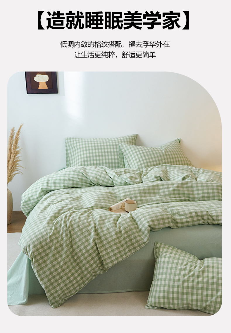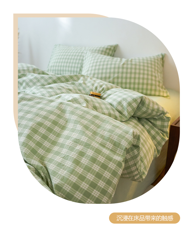 当前位置: 91家纺网 > 商品网购 > 床品套件 > 四件套 > 全棉普通四件套 > 兰紫橙家纺 2026新款全棉纯棉水洗棉四件套方格朵拉 方格-奶油绿