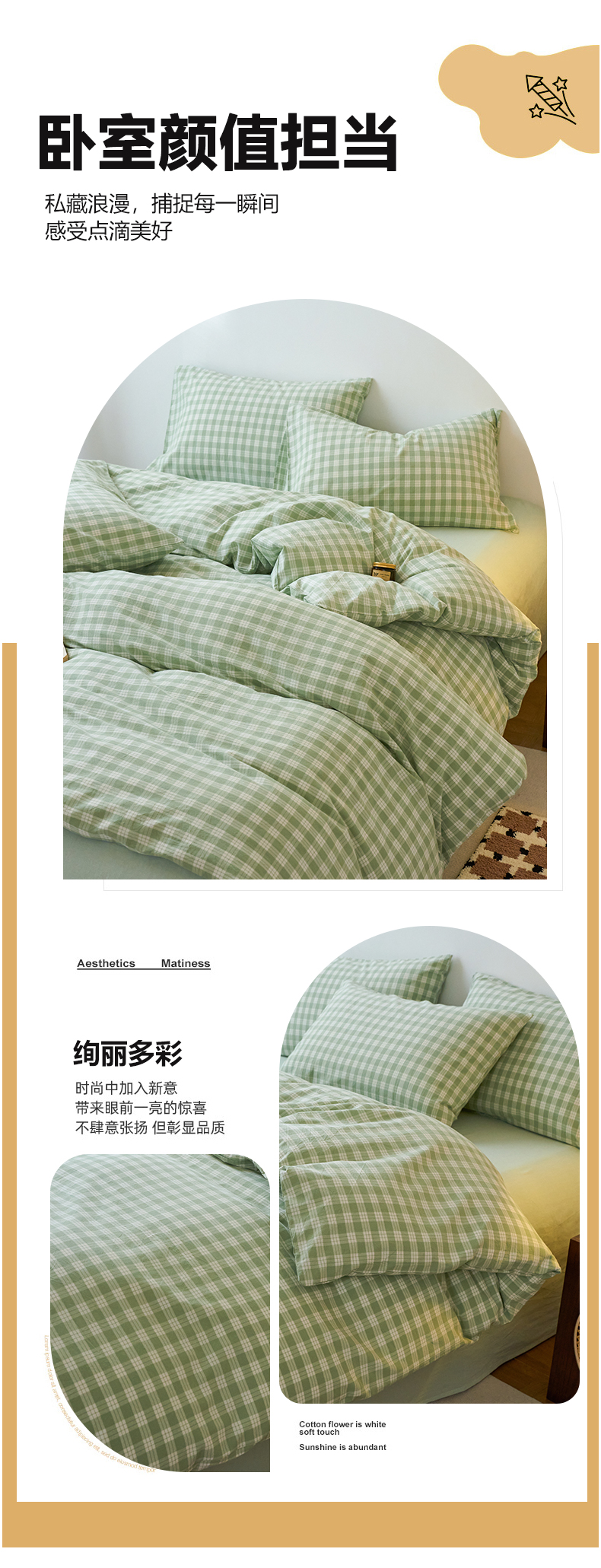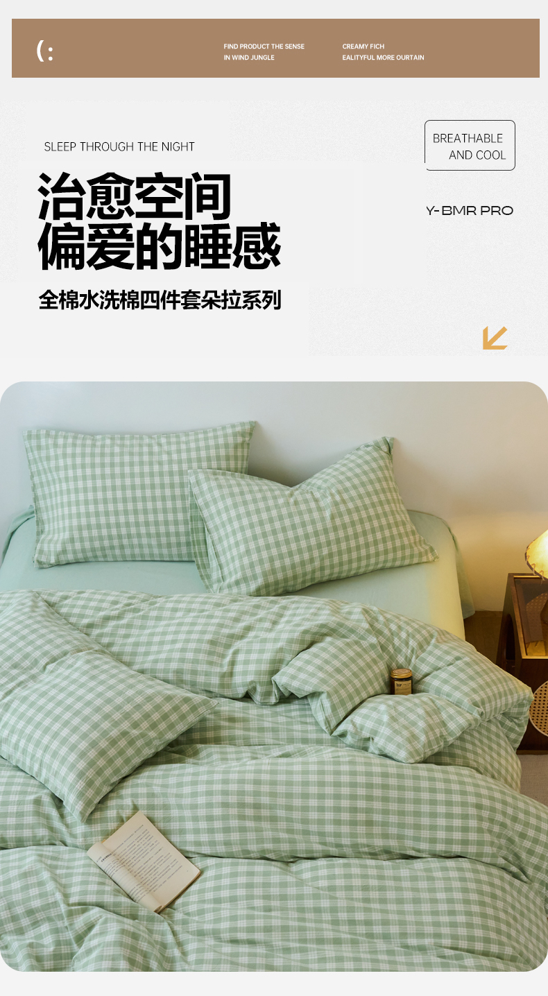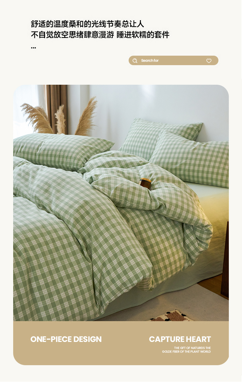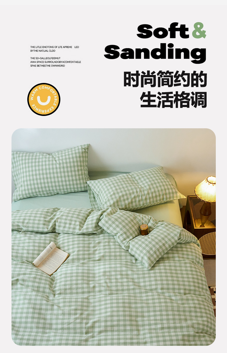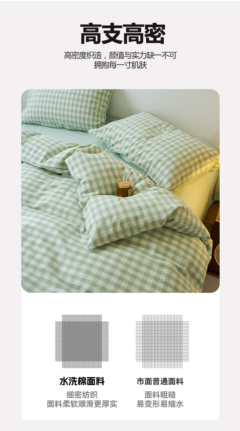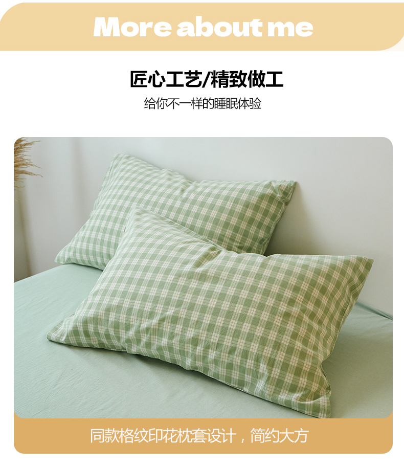 当前位置: 91家纺网 > 商品网购 > 床品套件 > 四件套 > 全棉普通四件套 > 兰紫橙家纺 2026新款全棉纯棉水洗棉四件套方格朵拉 方格-奶油绿