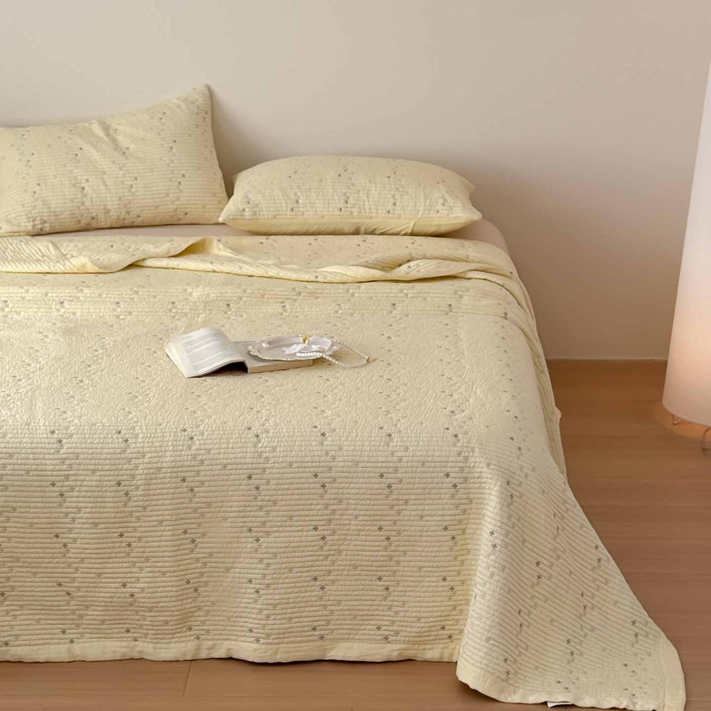 (总)床盖工厂店 2026新款四叶草双面莫代尔天丝填充棉花床盖三件套,碧空蓝,奶昔白,钛紫灰,月黄