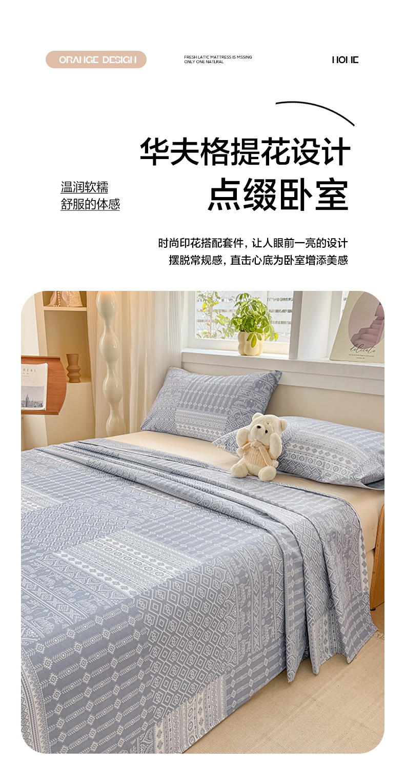 • 91家纺网 家纺一手货源 找家纺 爱彼家纺 2026新款全棉华夫格如意吉祥老粗布床单三件套 华夫格-吉祥-灰