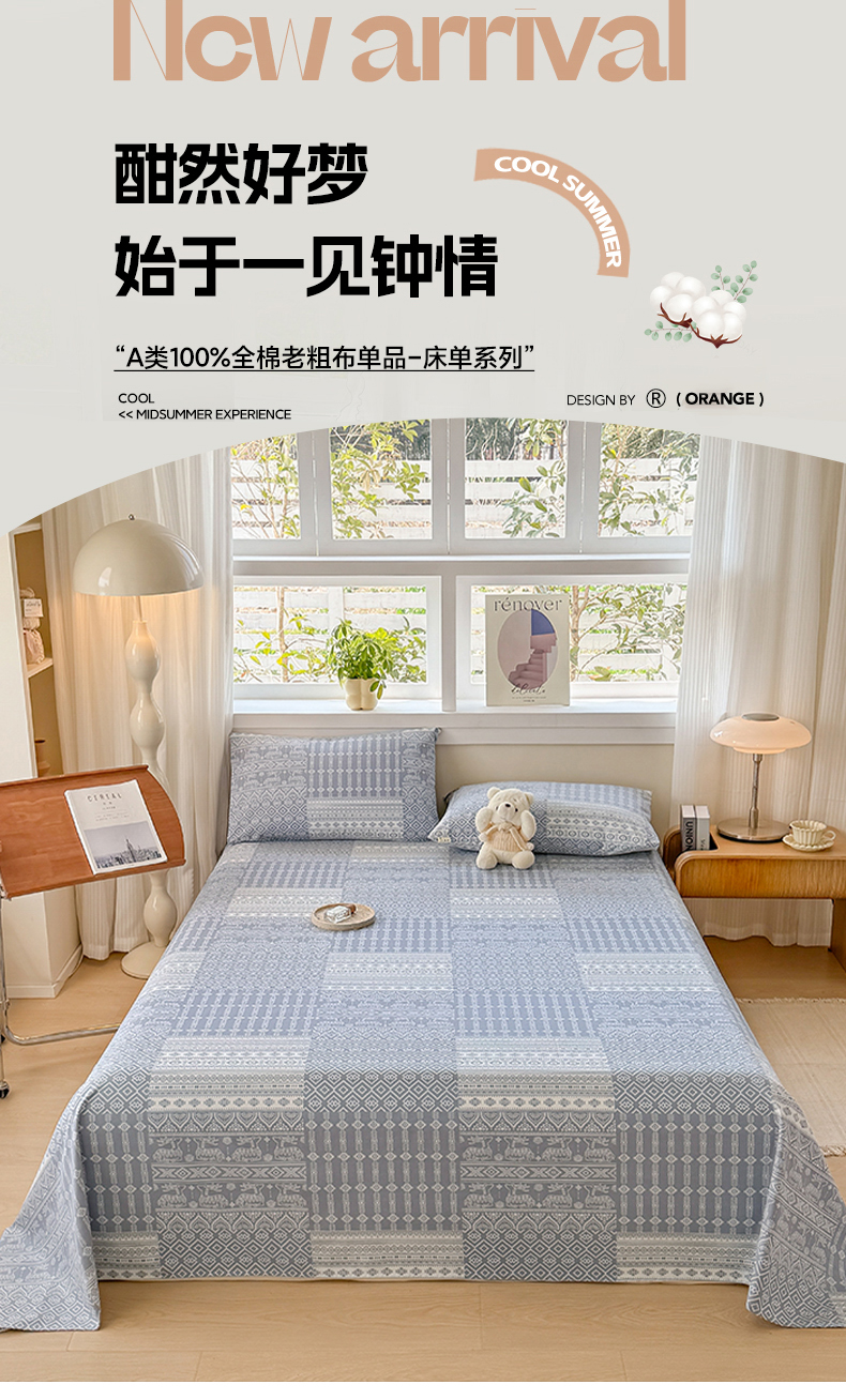 (总)爱彼家纺 2026新款升级细沙印花老粗布床单单品床单床单单件-细沙系列四,花笺,花漾手礼,花屿南瓜,蓝花序,蓝菊绘,山河日立,甜心