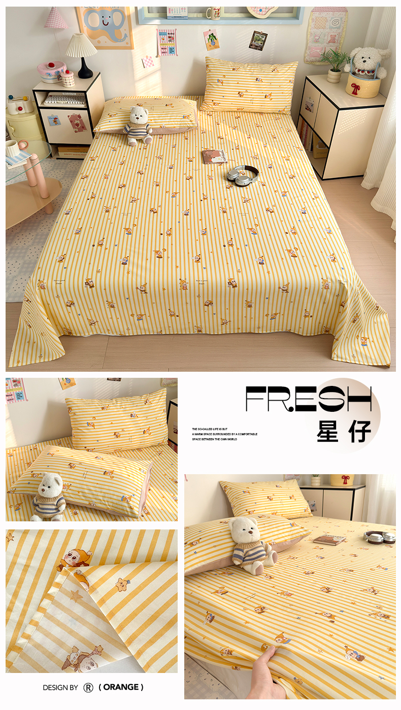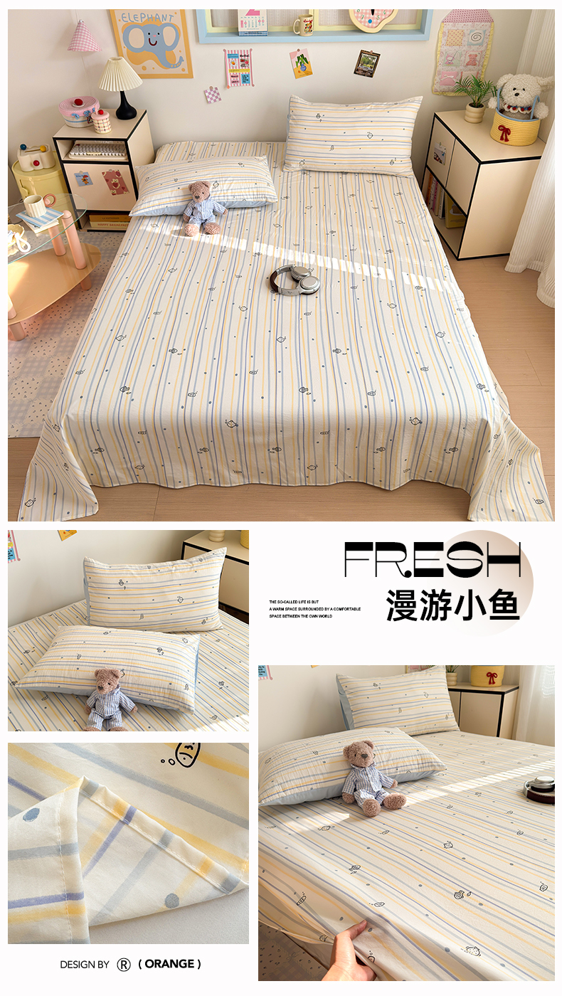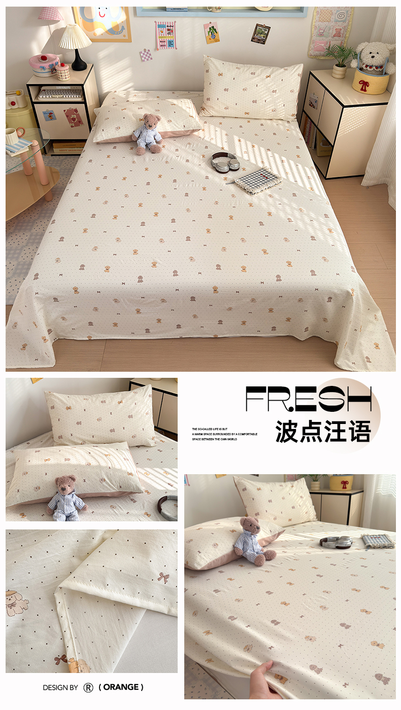 (总)沐芷 2026 【提供买家秀】A类单床单古法水洗仿棉 单人双人床单三件套,甜梦糖豆,星仔,巴黎甜心,白月光,豹纹音乐,波点汪语,彩虹跳跳糖,漫游小鱼,萌犬游记,萌物,迷你格-黄,迷你格-蓝,奶味圆饼,暖意小熊,樱桃物语
