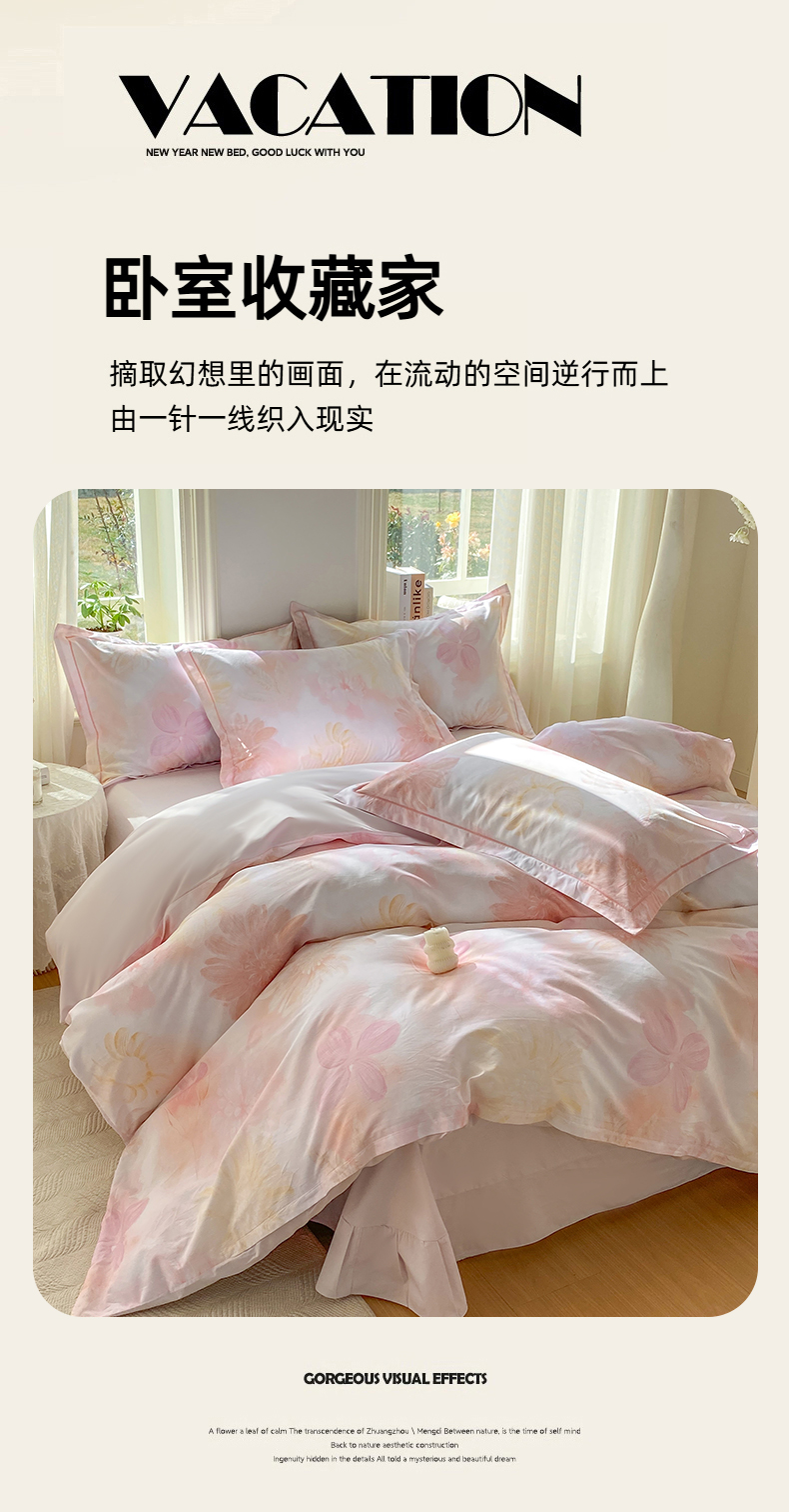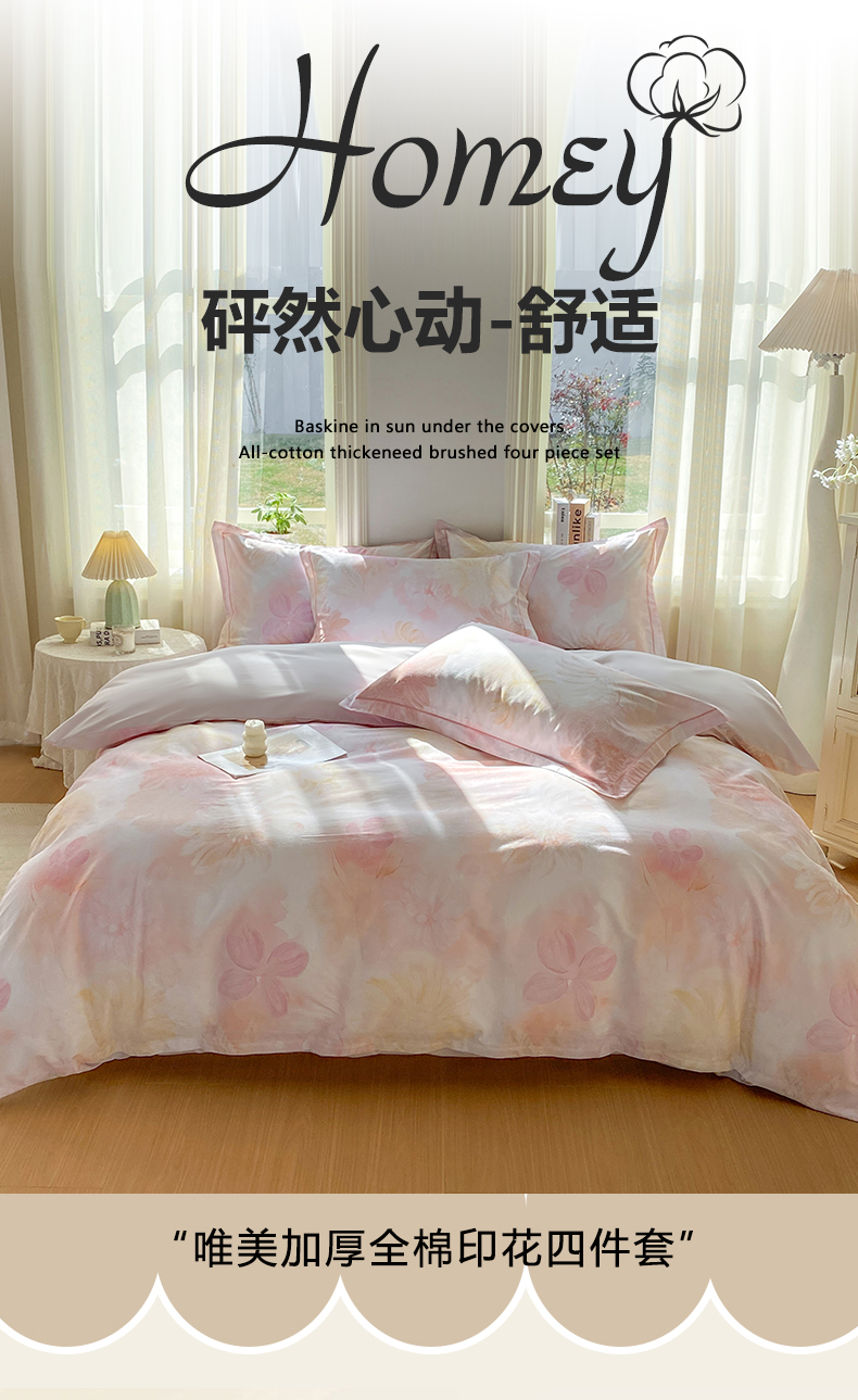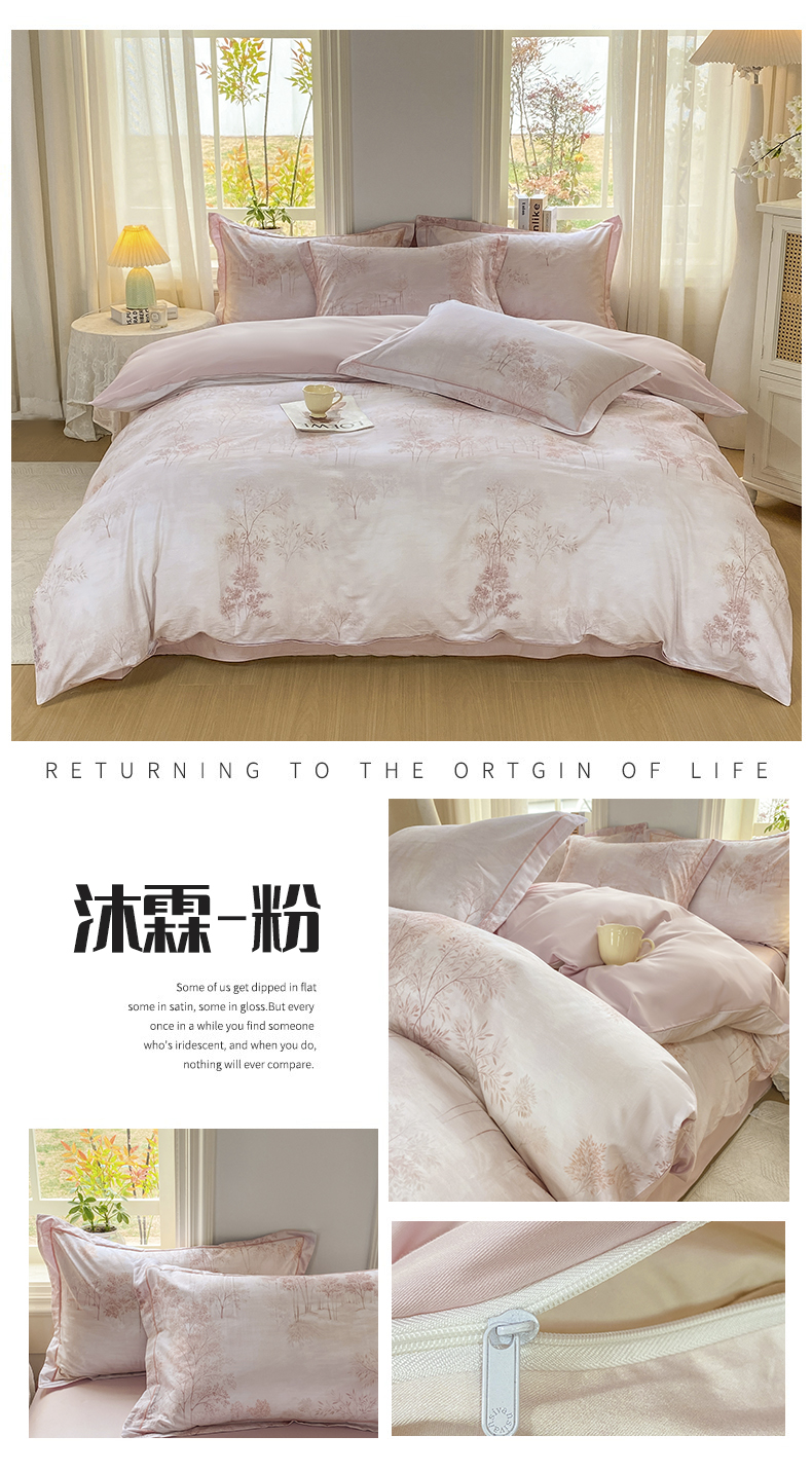 当前位置: 91家纺网 > 商品网购 > 床品套件 > 四件套 > 全棉普通四件套 > XIWEN-希文家纺 2026新款40支全棉13376数码印花四件套-第二批 白芨-粉