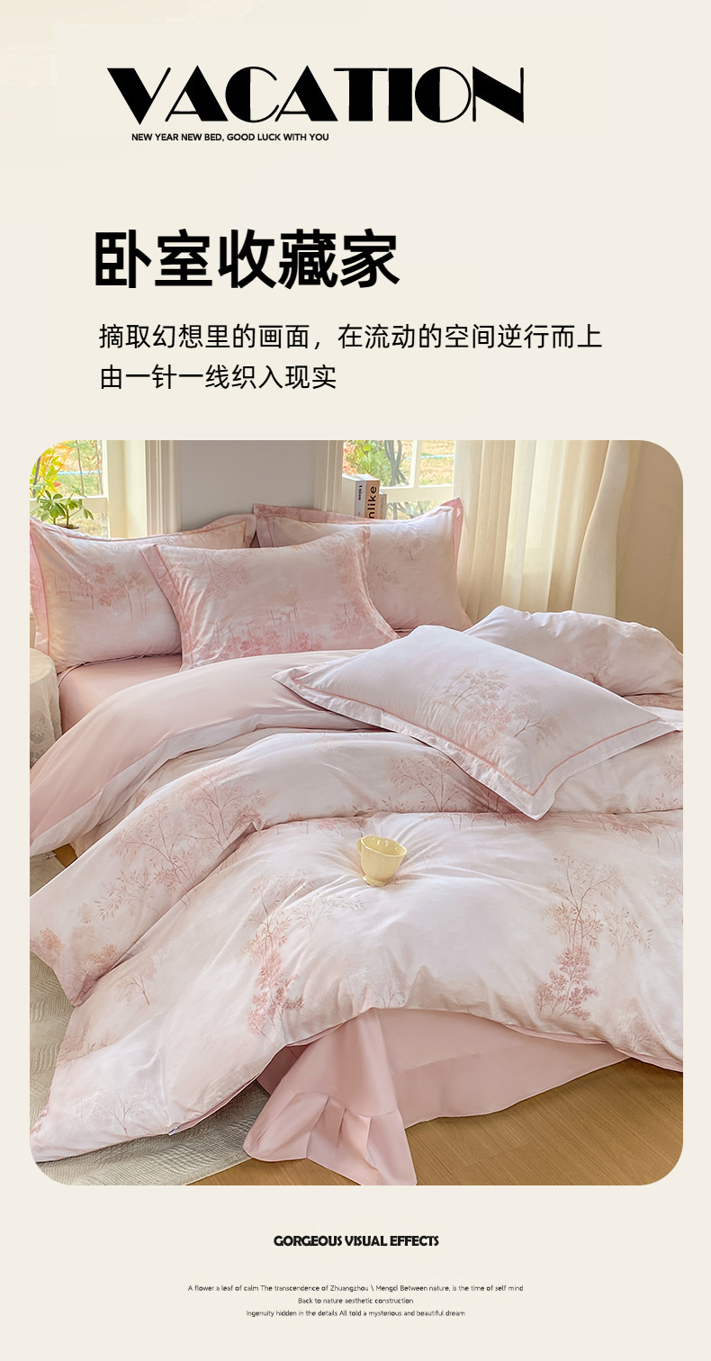 当前位置: 91家纺网 > 商品网购 > 床品套件 > 四件套 > 全棉普通四件套 > XIWEN-希文家纺 2026新款40支全棉13376数码印花四件套-第二批 沐霖-粉