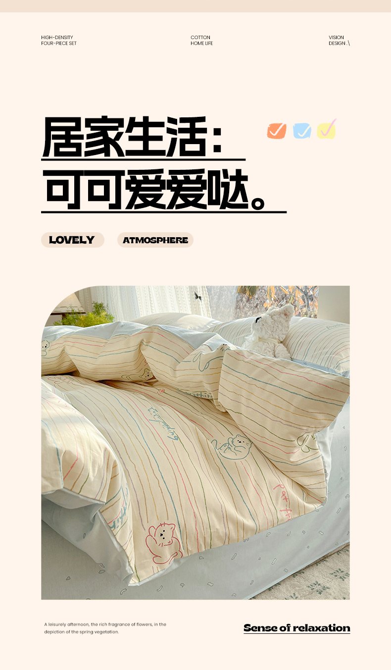 吉象家纺 2026春夏新款全棉印花四件套第二批 线条猫