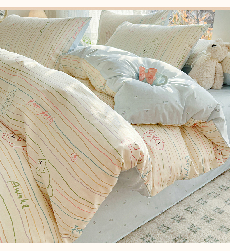 商品名称:吉象家纺 2026春夏新款全棉印花四件套第二批 线条猫