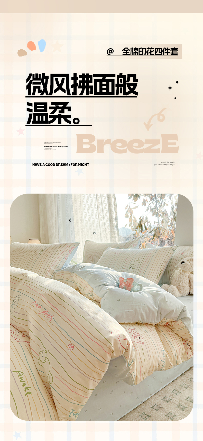 (总)吉象家纺 2026春夏新款全棉纯棉印花四件套,可爱星人,爱心小龙,鼻涕狗,嘟嘟小熊,花园梦梦,萌星,免兔野餐会,甜酱小猫(粉),兔兔梦境 米,熊熊时光,眼镜狗狗