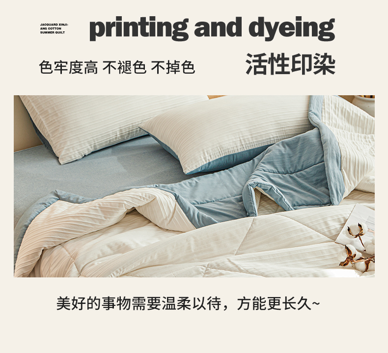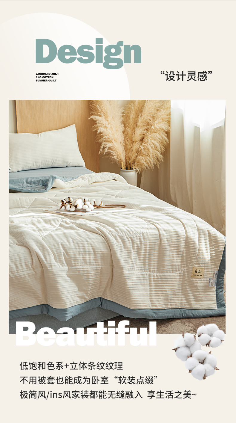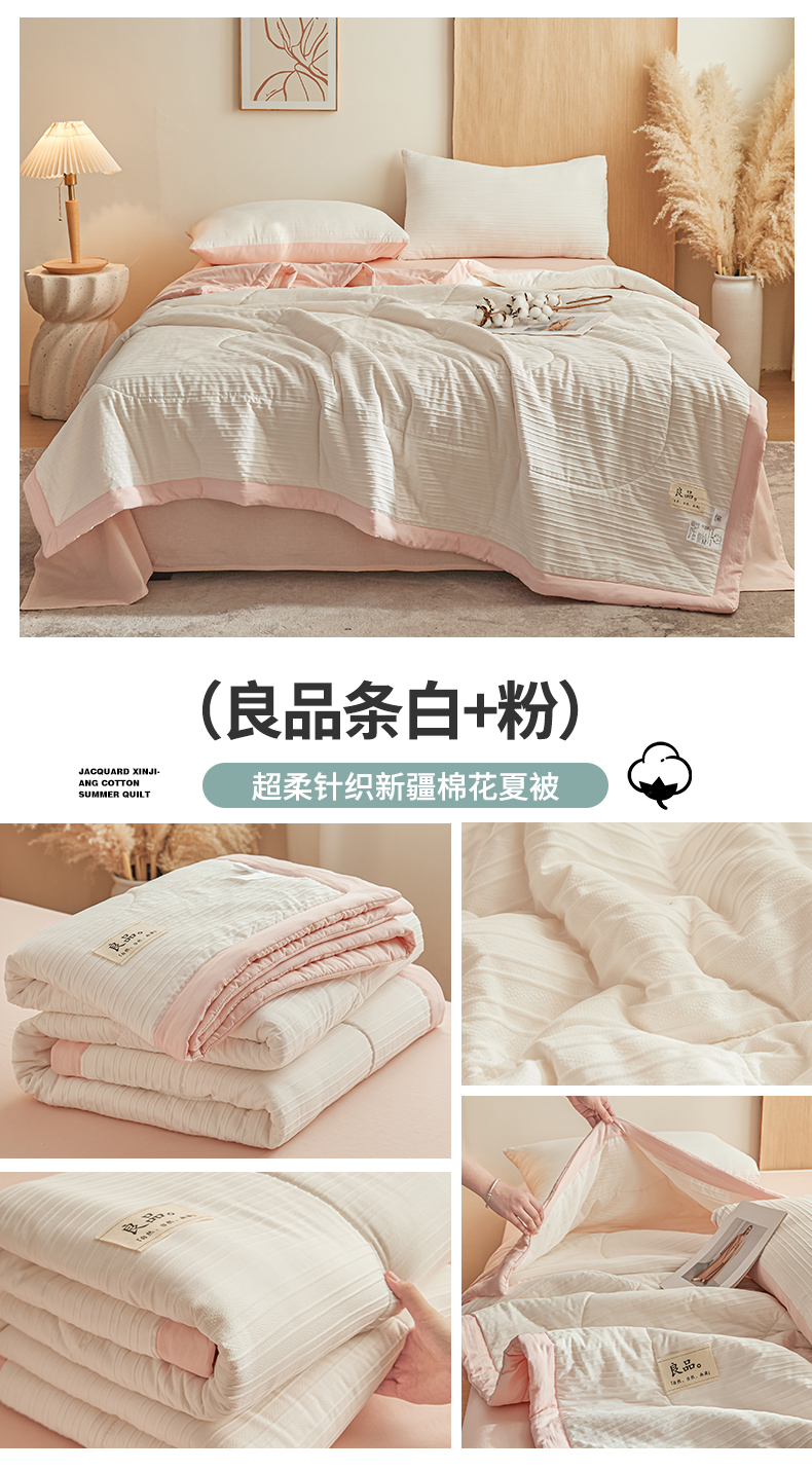 (总)尊妙被业 2026新款良品条白100%新疆棉花夏被,良品条白+粉,良品条白+咖,良品条白+蓝,良品条白+绿